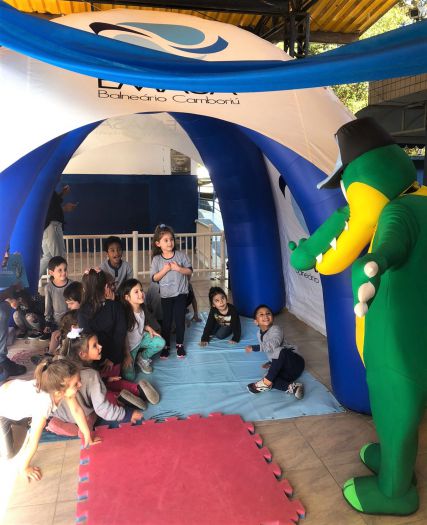 De forma lúdica e com brincadeiras, os alunos aprendem sobre os cuidados com os rios e praias, o uso correto da água para evitar desperdício, como ao tomar banho e escovar os dentes. “Usamos uma linguagem simples, incluindo brincadeiras para que os alunos despertem desde pequenos sobre consciência ambiental e levem o aprendizado para dentro de suas casas, pois as crianças são agentes multiplicadores entre seus pais, irmãos, familiares e amigos”, menciona o engenheiro Ambiental Sanitarista, Hilário Zornitta Júnior, um dos responsáveis pelo programa. Todas as crianças recebem de brinde do mascote um canudinho sustentável.