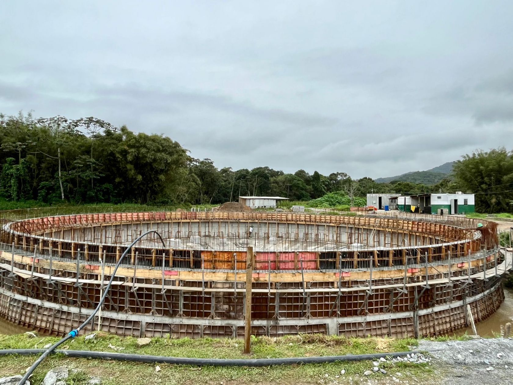 A Empresa Municipal de Água e Saneamento de Balneário Camboriú - Emasa, teve executada nesta quinta-feira (05), mais uma etapa da obra do novo decantador da Estação de Tratamento de Esgoto (ETE) do bairro Nova Esperança: a concretagem da calha do novo equipamento.
