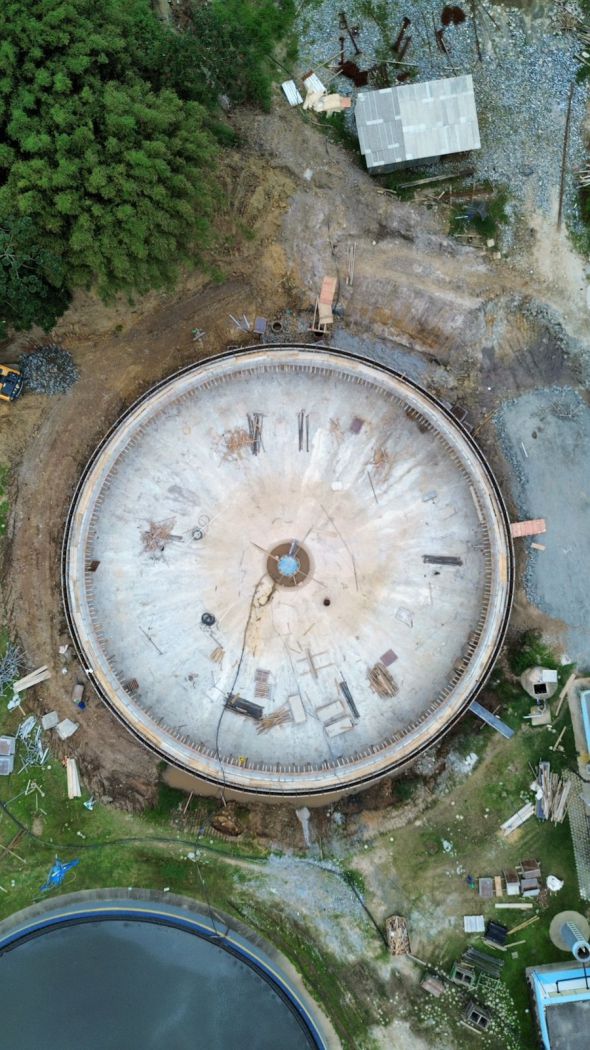 A construção do Quarto Decantador secundário da ETE Nova Esperança segue dentro da previsão. Quando entrar em operação, o novo equipamento propiciará maior ganho em eficiência no tratamento do efluente sanitário.