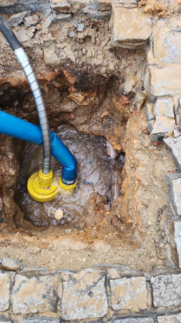 Conserto emergencial em tubulação rompida na rede de água na esquina da Rua Hermógenes de Assis Feijó com a Rua José Francisco Vítor, afeta o abastecimento de água no Bairro da Barra nesta quarta-feira (13).