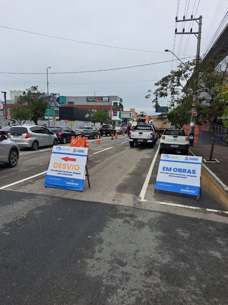 O trânsito no trecho da 4 ª Avenida (próx. Rua 2000) está interditado nas duas pistas da extrema direita para a execução do conserto e o cruzamento na região está bloqueado. O local está sinalizado para orientar os motoristas e os agentes de trânsito estarão monitorando.