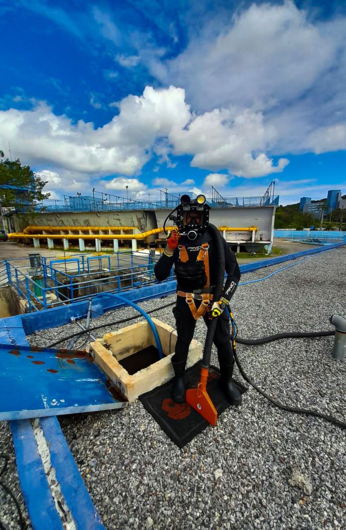 Para garantir a qualidade na água distribuída à população, a Empresa Municipal de Água e Saneamento (Emasa), executa anualmente, a limpeza preventiva dos reservatórios de abastecimento de água. O procedimento é feito tanto em tanques da Estação de Tratamento de Água (ETA), como nos reservatórios localizados nas diversas regiões da cidade. Nesta segunda-feira (07), a limpeza ocorreu por meio de um método diferente, com o auxílio de mergulhadores especializados.