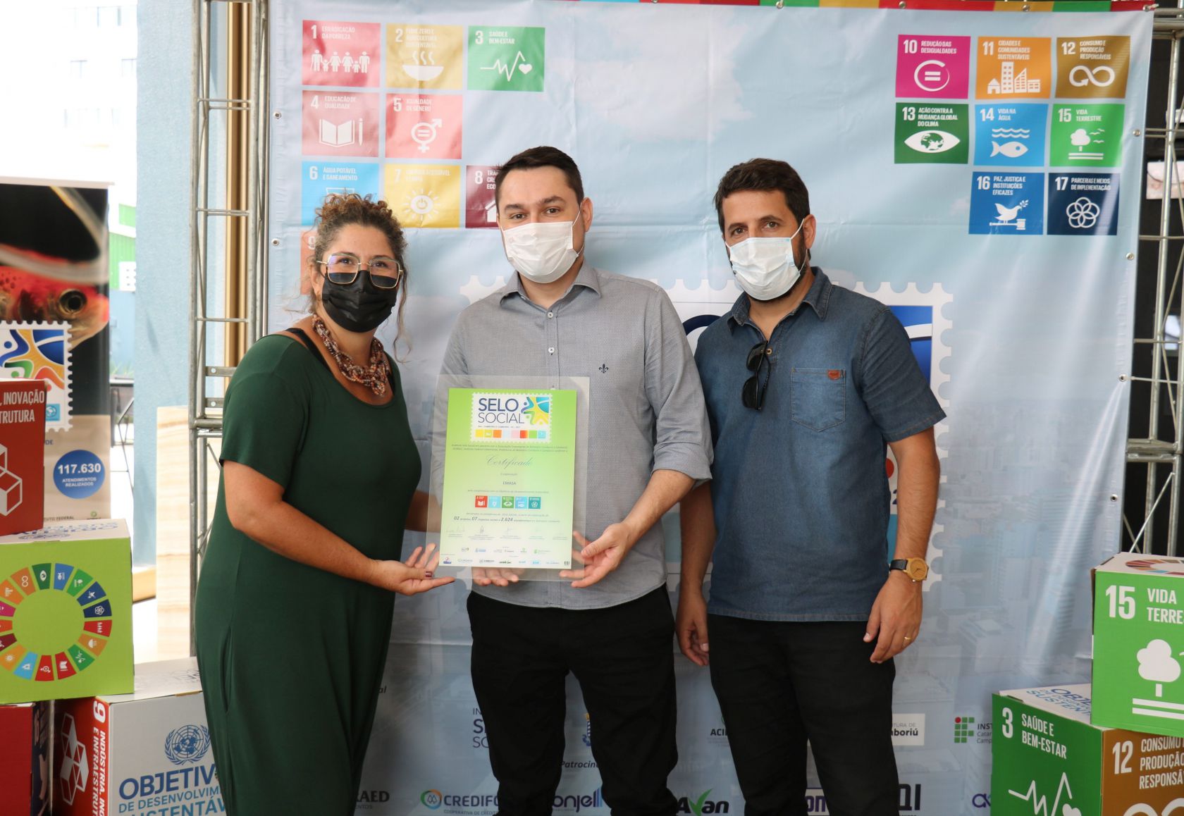 Pelo compromisso com os Objetivos de Desenvolvimento Sustentáveis – ODS, a Empresa Municipal de Água e Saneamento (EMASA) recebeu nesta quarta-feira (23), a certificação Selo Social – um projeto do Instituto Selo Social com abrangência em todo o Brasil. A premiação foi concedida por meio de dois projetos da Autarquia: Programa de Educação Ambiental (PEA) – Jacamasa e Produtor de Água do Rio Camboriú, que geraram 07 impactos sociais e 2.624 atendimentos em Balneário Camboriú. Esse foi o terceiro ano consecutivo que a Emasa conquista o selo.