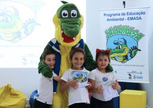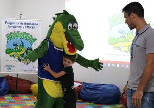 A presença do amigo da EMASA foi sem dúvida a mais esperada e o JACAMASA chegou cantando e dançando sua música e animando a garotada. Mas, o jacaré-de-papo-amarelo além de trazer diversão, veio para testar o aprendizado dos alunos. A equipe realizou uma atividade com perguntas sobre o tema abordado. Não faltou entusiasmo, principalmente pela expectativa de ao acertar a resposta, ganhar uma camiseta com o desenho do jacaré. “Eu adorei o JACAMASA, queria muito conhecer ele e aprendi muita coisa hoje e vou ensinar pra minha mãe e meu pai”, falou a aluna da pré-escola, Maria Fernanda Achutti.