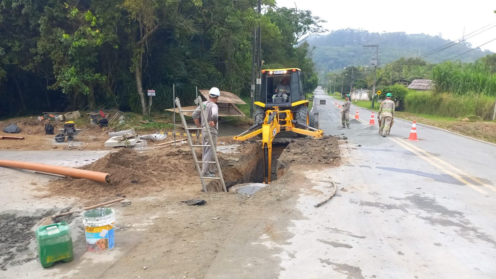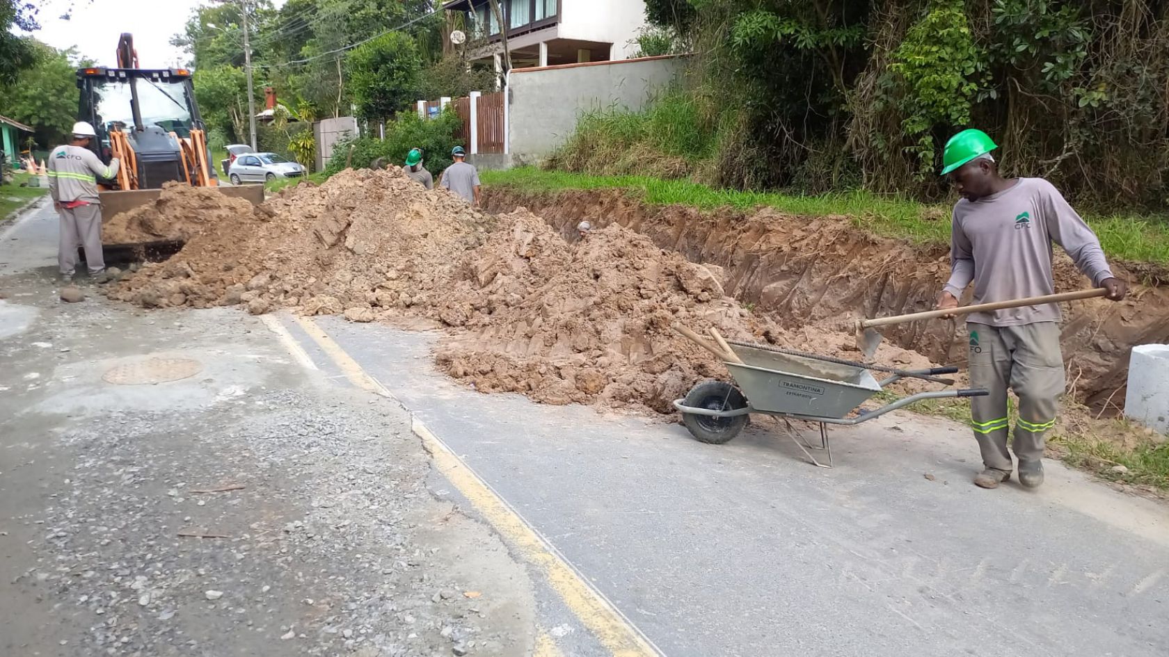 Até o momento, 37 ruas foram contempladas, sendo: 28 ruas com a rede concluída - 11 no Estaleirinho e 17 no Estaleiro. Destas, 09 estão com serviço em andamento, fase de pavimentação ou com alguma pendência, como os casos que precisam da detonação de rocha. As obras iniciaram no fim do mês de outubro de 2021.