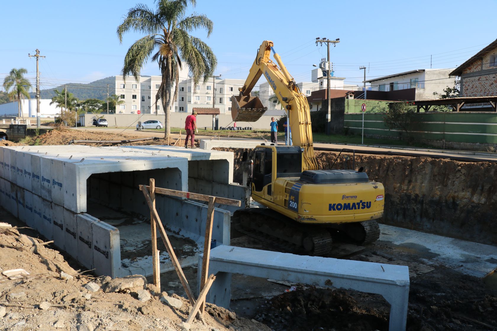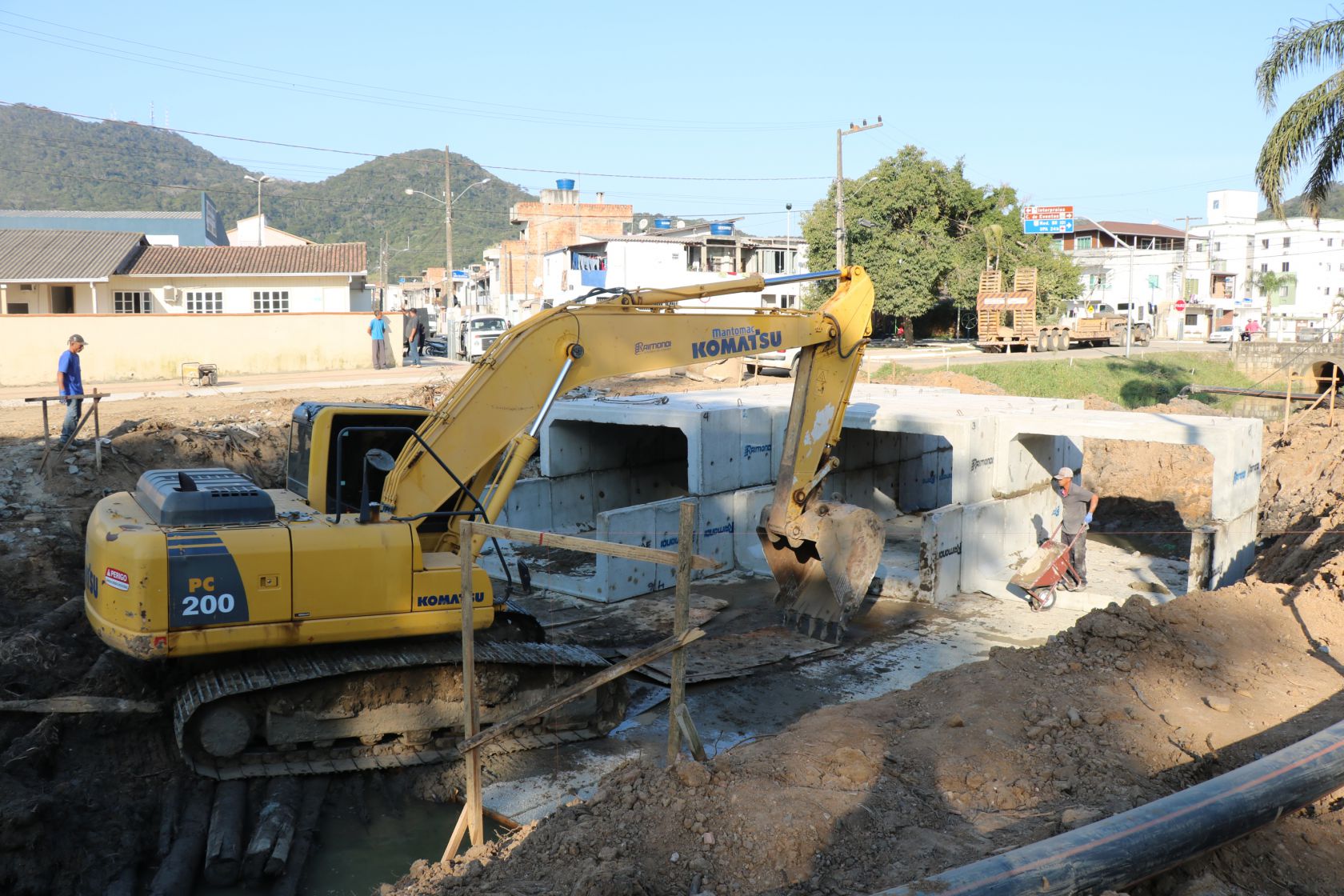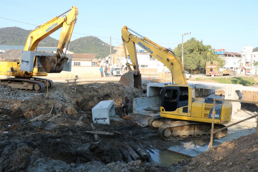 segue a todo vapor e a semana iniciou com a instalação das galerias celulares da nova ponte - entre as ruas Pedro Pinto Felipe e Sargento Mário Manoel Rodrigues, na Barra. Assim como as outras duas pontes já existentes no trajeto do rio, a nova estrutura vai auxiliar na vazão da água do rio e trazer mais segurança aos moradores da região Sul.