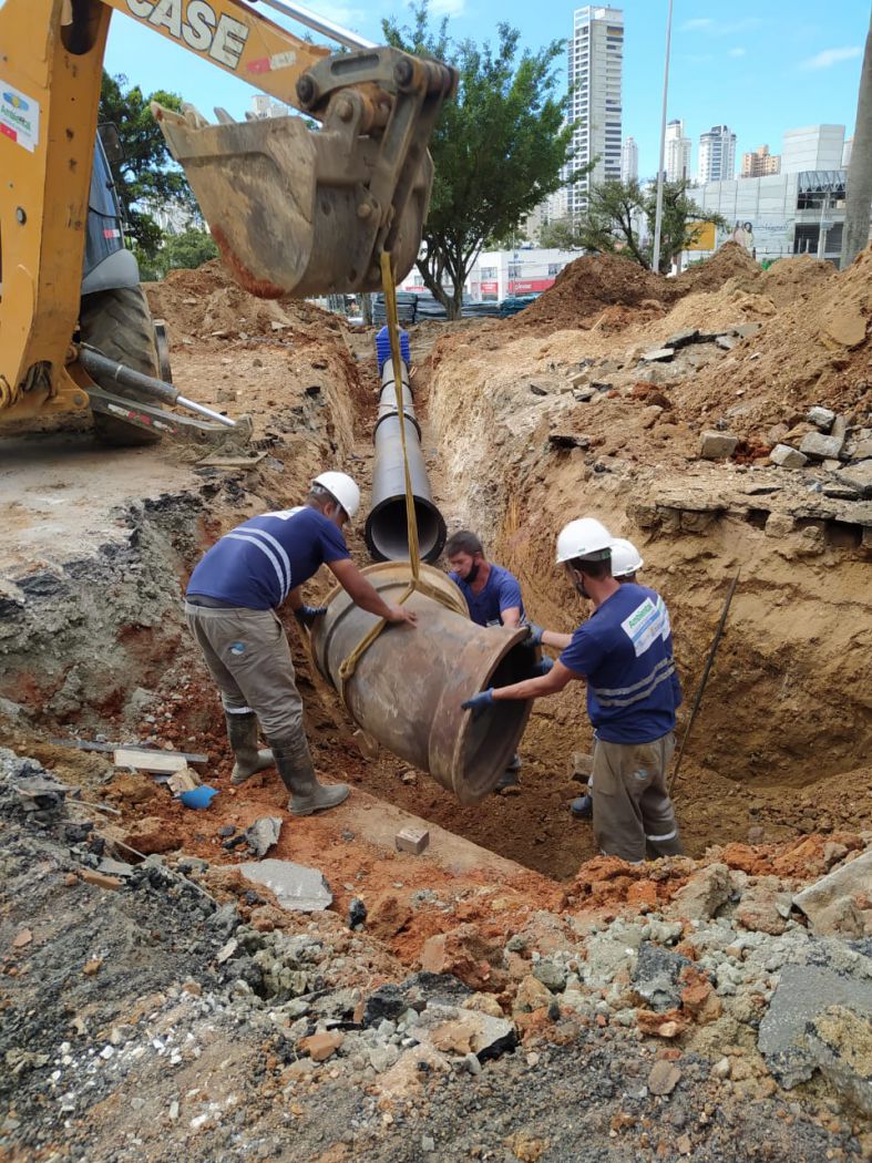 As redes adutoras interligam a Estação de Tratamento de Água (ETA) ao reservatório R1, que abastece a região Central da cidade. A obra consiste em executar duas novas adutoras – uma DN 400 e outra DN 700 – para substituir as existentes, que estão no trecho da pista que será rebaixada. A execução ocorre conforme os trechos são liberados pela Secretaria do Planejamento, até o assentamento total de rede e a interligação final das adutoras.