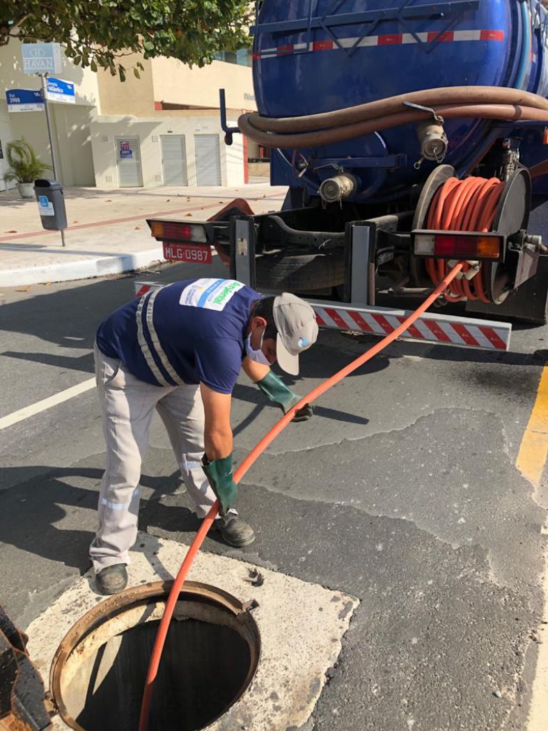 A intervenção é necessária porque o asfalto cedeu no local e abriu. Nesta manhã, a equipe foi verificar e fez o uso do caminhão hidrojato, mas não foi possível corrigir o problema, precisando abrir para o conserto. A rede de esgoto está fluindo normalmente, não causando extravasamento em nenhum ponto à montante.