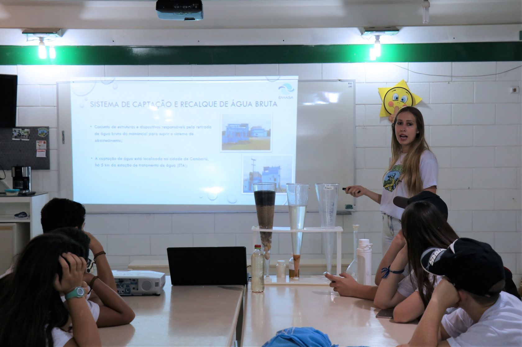 Além de conhecerem o funcionamento da ERAB, onde é feita a captação de água bruta direto no Rio Camboriú, antes de ser enviada para o tratamento, exemplificando o processo na prática, os alunos aprenderam que a bacia do rio é relativamente pequena, o que ocasiona baixo nível de água em períodos de estiagem. “Mostramos o processo de captação e tratamento da água e também a realidade do rio para que esses alunos, que já participam de um grupo com os mesmos propósitos do Jacamasa, desenvolvam cada vez mais consciência ambiental e ajudem a cuidar da nossa água”, disse uma das responsáveis pelo PEA, Ana Carolina.