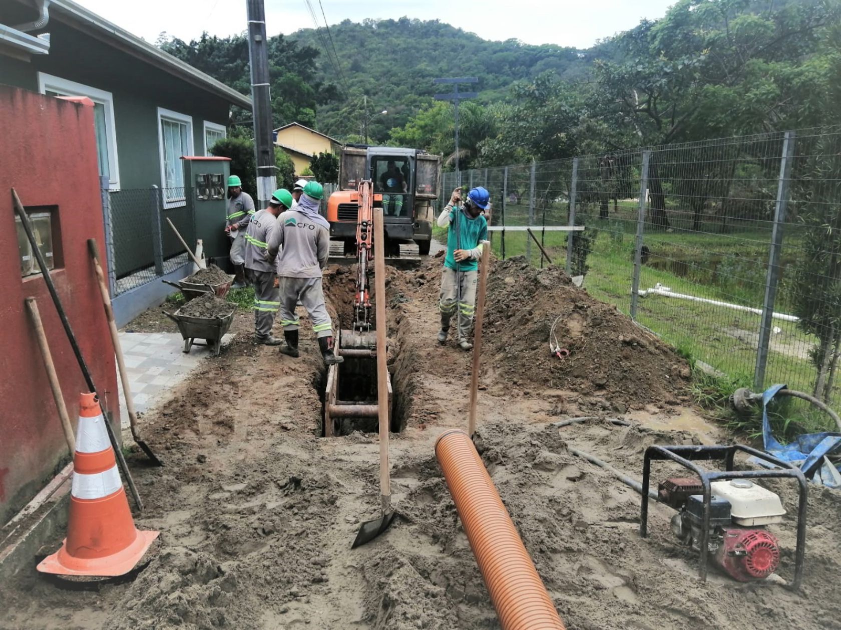 Os trabalhos para implantação da rede coletora de esgoto seguem nos bairros Estaleiro e Estaleirinho, com mais de 5.200 metros de rede executados em 32 ruas, sendo 21 no Estaleirinho e 11 no Estaleiro. Destas, 12 ainda serão repavimentadas.