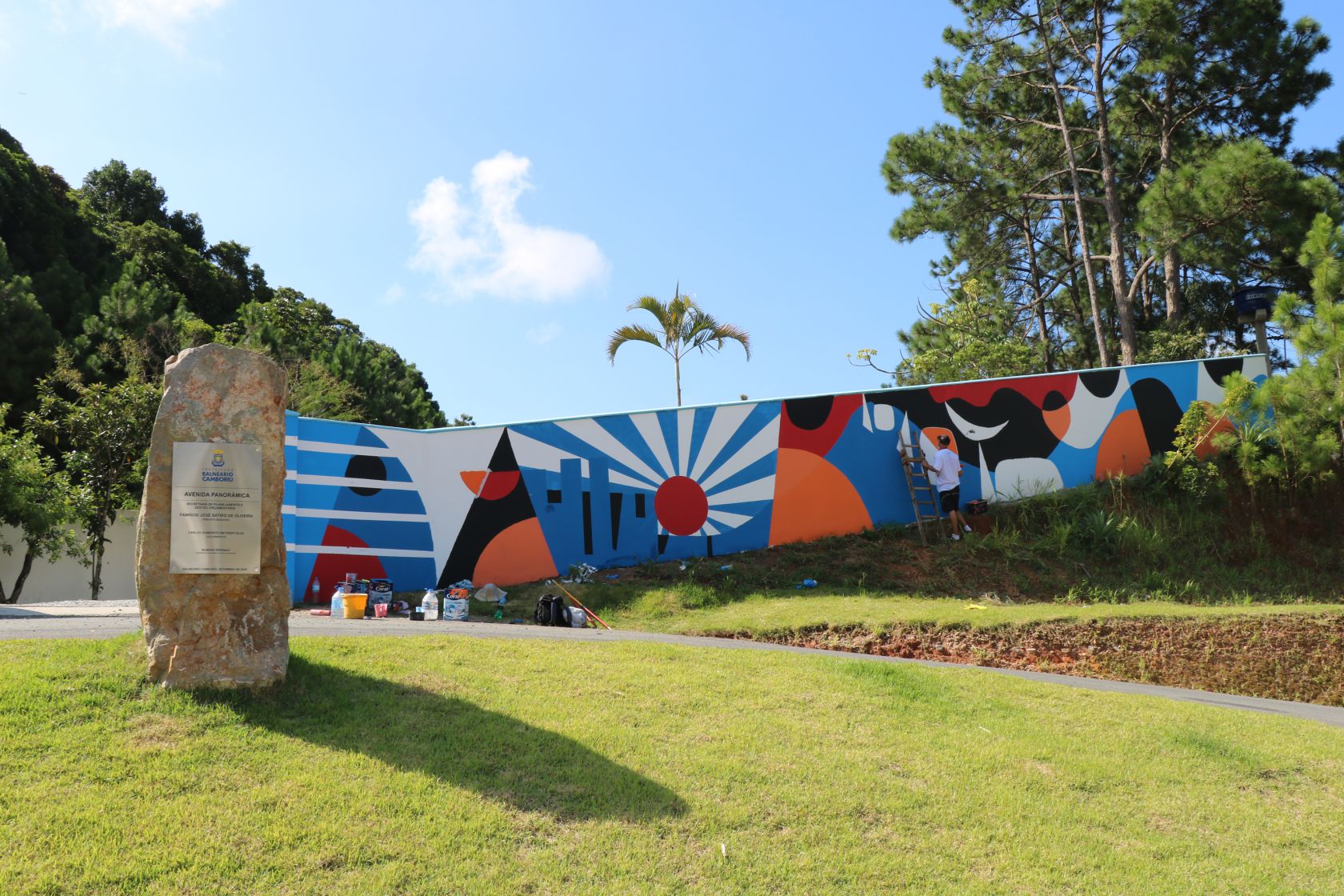 Quem passar pela Avenida Panorâmica em Balneário Camboriú, poderá apreciar uma obra de arte a céu aberto. A pintura mural feita em dois muros da Emasa, que totalizam 110 metros quadrados, retrata o momento que a humanidade vive com o surgimento da Covid-19. A obra é do artista visual é Marcelo Urizar, e faz parte do projeto "PandemiArte", contemplado com recursos federais da Lei Aldir Blanc, por meio da Fundação Cultural.