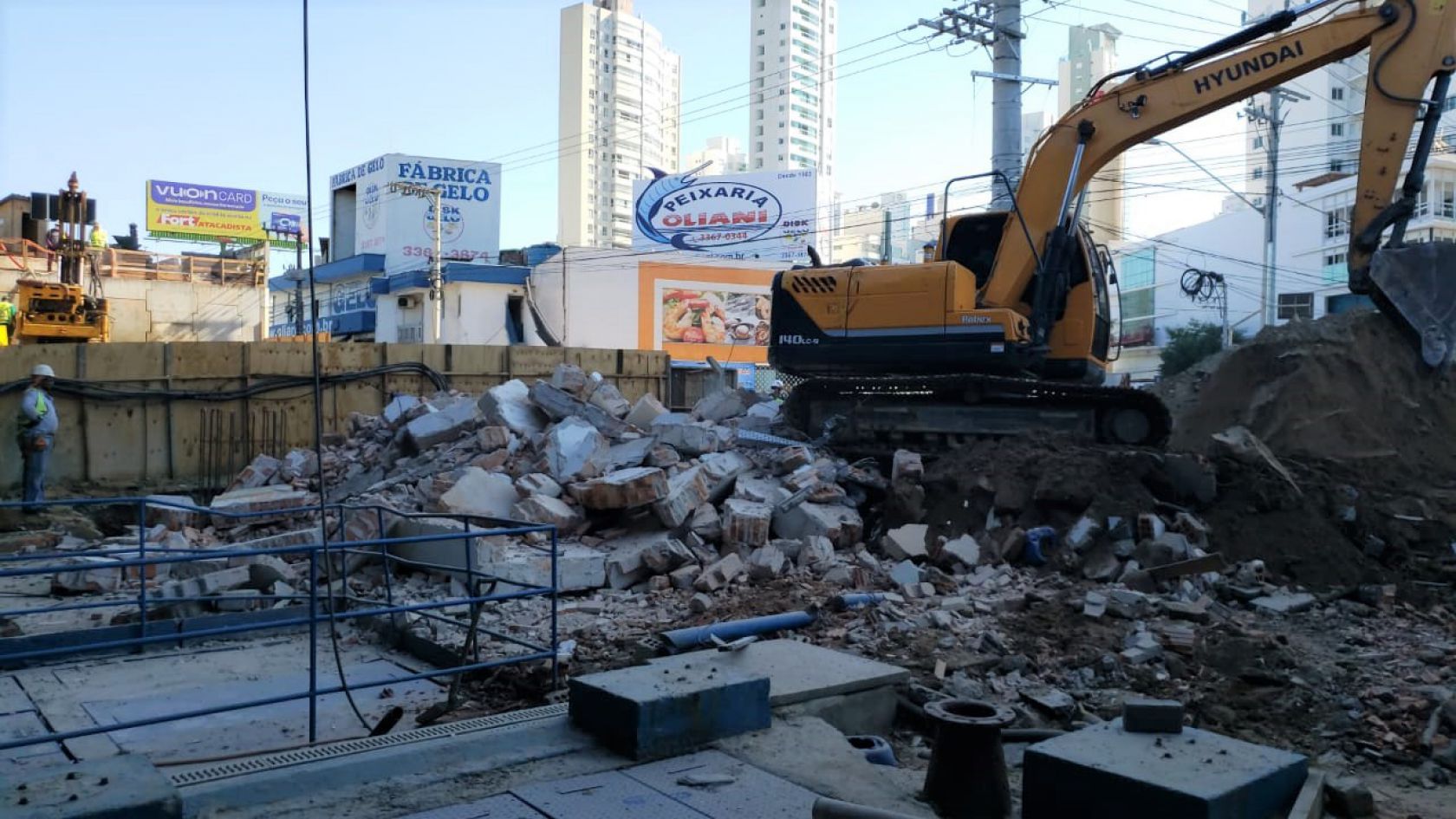 Já a antiga subestação foi demolida nesta segunda-feira (11) e o espaço foi limpo e está disponível para obra da ponte.