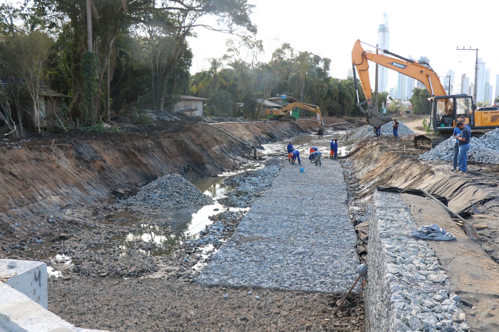 Das três pontes contempladas no projeto, a reestruturação na ponte da Rua Adaci Santos Gomes já foi concluída, a da Rua Pedro Pinto Felipe está em fase final de execução; e a terceira ponte será da Rua Maria Mansoto, prevista para iniciar na segunda quinzena de agosto. Os trabalhos nesta semana também seguem no trecho 06, com a readequação do leito, instalação de gabião tipo colchão reno – contenção nas margens e fundo do rio (Rua Maria Mansoto/ Rua Adaci Santos Gomes) e topografia.
