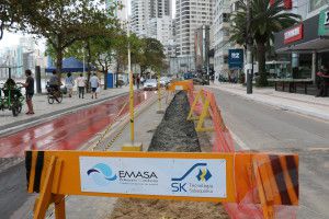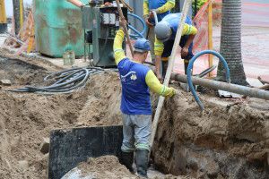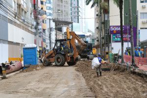 Na Avenida Atlântica, a obra acontece da Rua 2300 até 2000, com rebaixamento de lençol freático e escoramento de vala, para posterior assentamento da tubulação. Com isso, o trânsito no local sofre interferências neste trecho, ficando em meia pista ou sendo desviado pela ciclovia em alguns momentos. O acesso a essas vias também está interditado e o local sinalizado para orientar os motoristas.