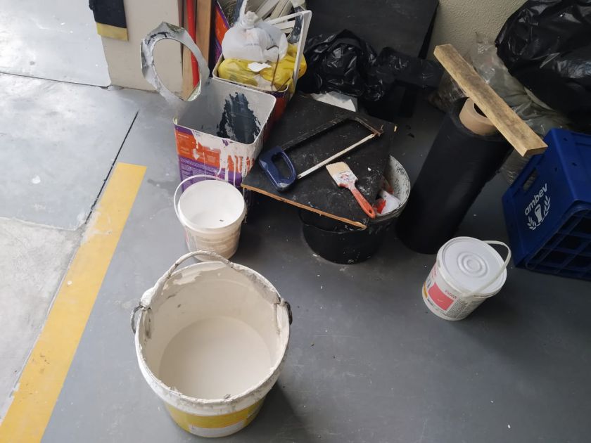 Ao vistoriar um prédio na Rua 1131, a equipe observou que estavam mexendo com tinta e o ralo tinha sido recém lavado. “Foi verificado ainda, que haviam resquícios de tinta na Caixa de Passagem dos ralos do pluvial, indicando que a mancha pode ser proveniente dessa tinta, talvez por terem lavado objetos sujos e escoado neste ralo”, mencionou a fiscal Sanitarista, Andressa Algayer.