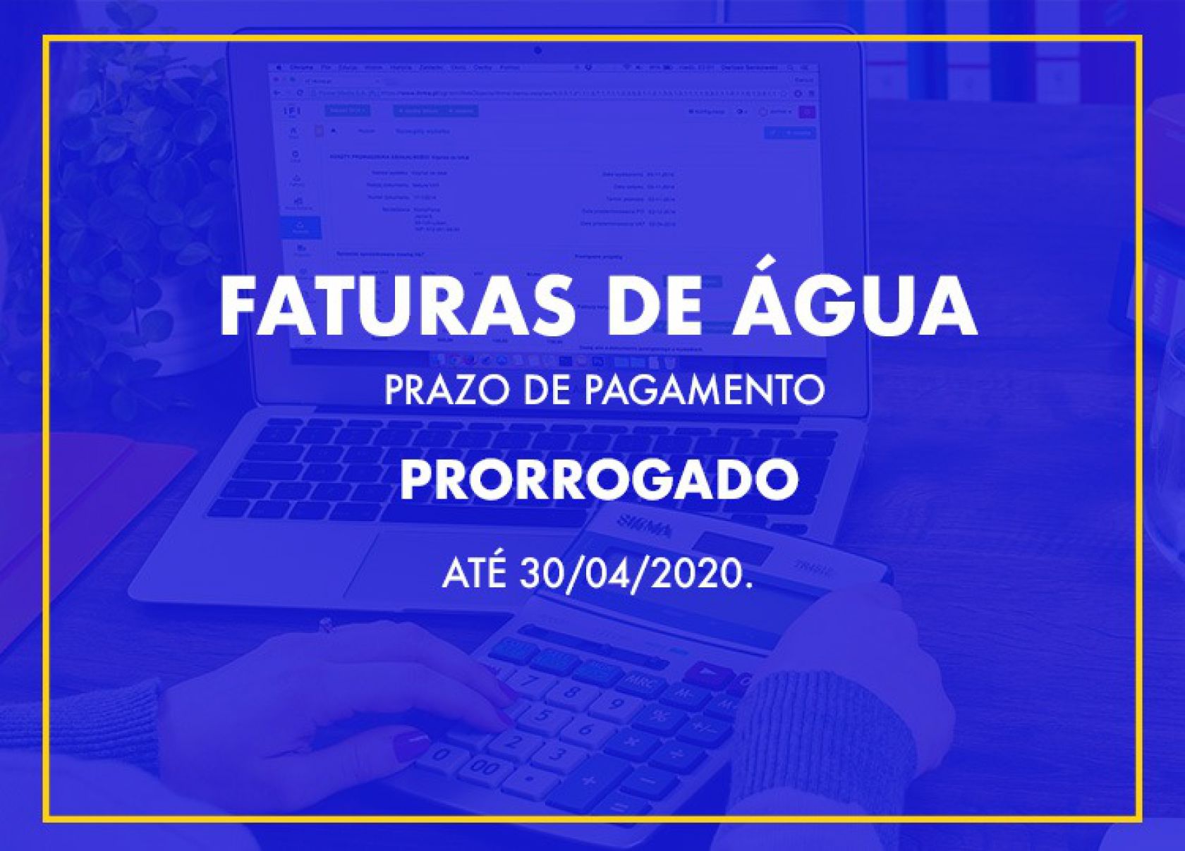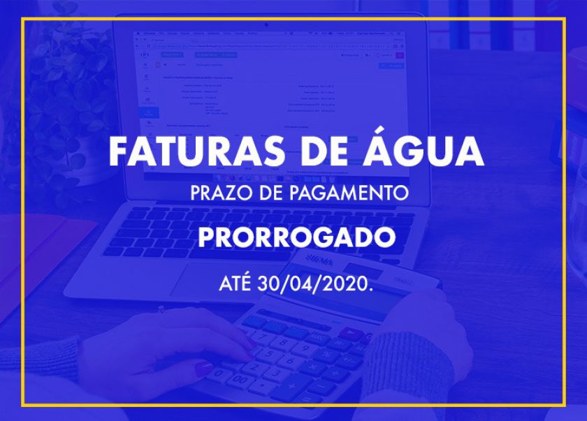 A Emasa informa que as faturas de água vencidas a partir do dia 15 de março de 2020, terão o prazo de pagamento prorrogado até 30 de abril de 2020. A medida foi definida para que nenhum consumidor seja prejudicado, tendo em vista todas as ações que estão sendo tomadas para frear o avanço do coronavírus (COVID-19).