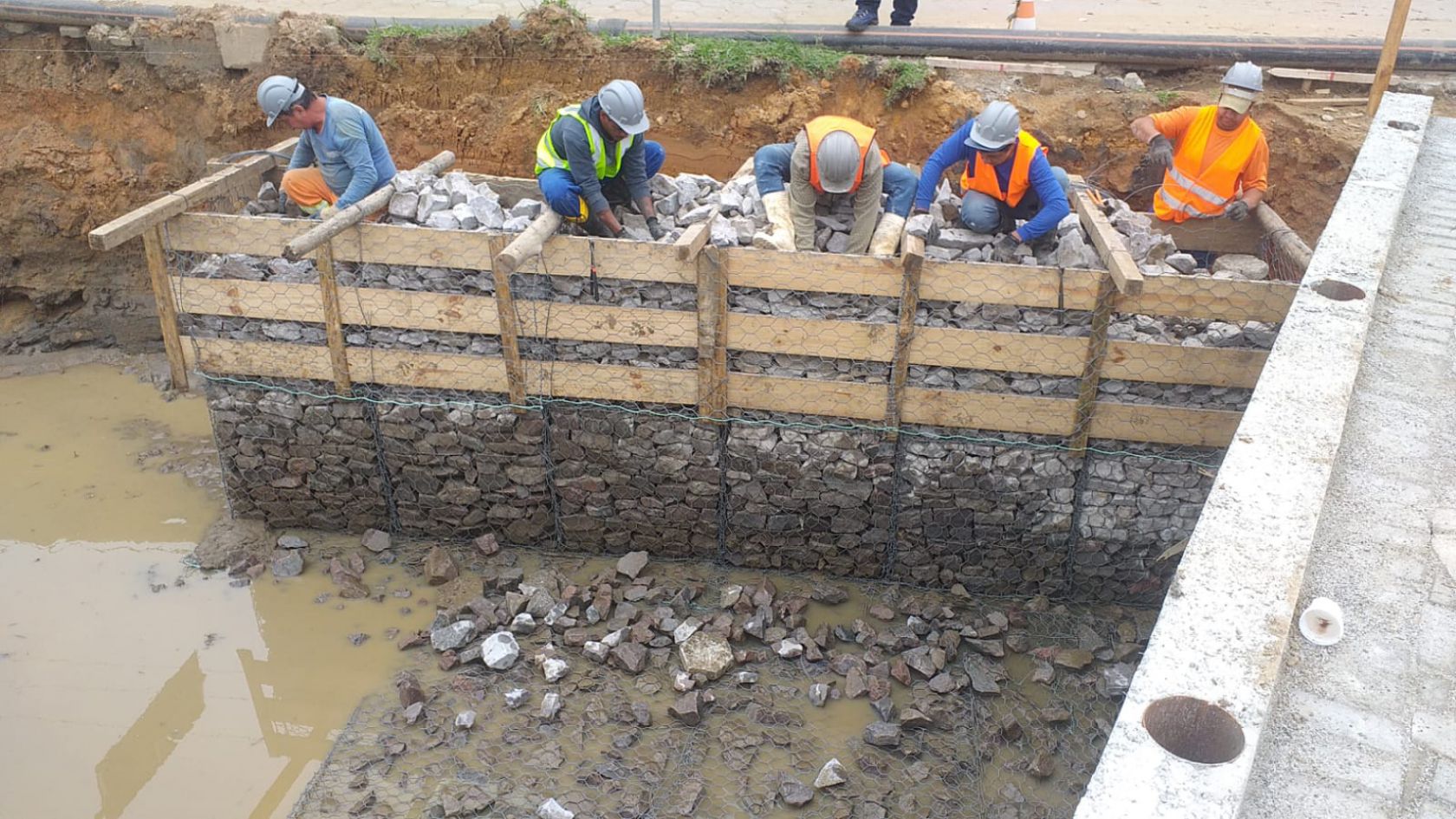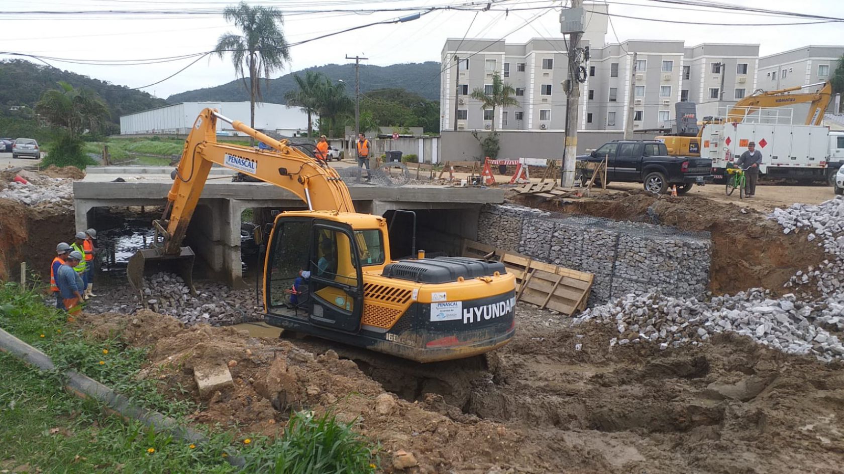 A obra da ponte na Rua Maria Mansoto, contemplada no projeto de limpeza das margens, dragagem e readequação de calha do Rio das Ostras, avança para mais uma etapa, com a concretagem da estrutura, incluindo as calçadas em paver. Ao lado da ponte no trecho 06, segue a instalação de gabião caixa (contenção nas margens). Durante a semana, uma outra equipe trabalha no trecho 02 (próx. ruas Paulo Cunha e José Alves Cabral, Nova Esperança). Até o momento, a obra total foi executada em 90%, com previsão de término até o fim de outubro.