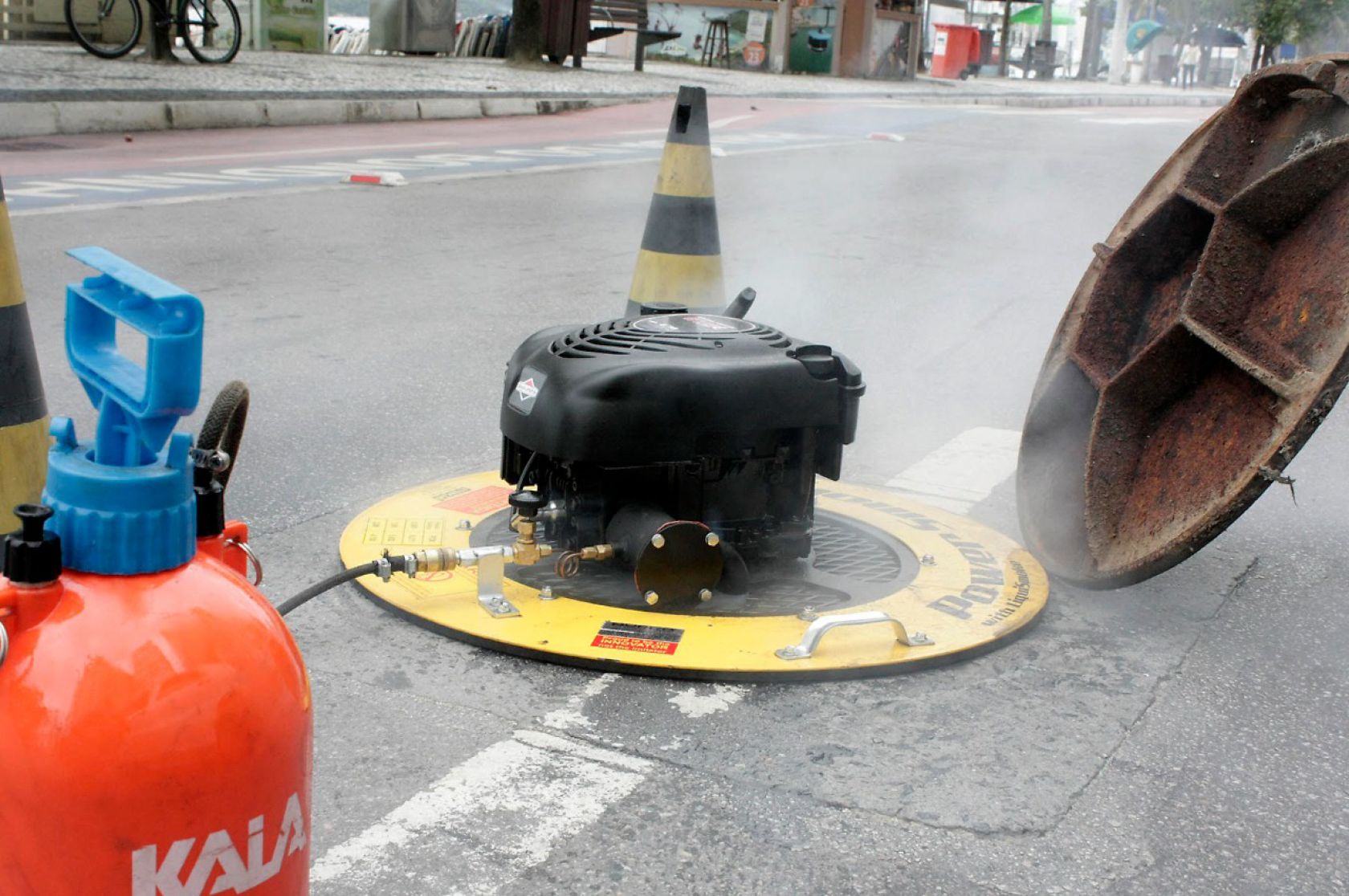 O teste de fumaça é uma técnica utilizada para detectar irregularidades e vazamentos na rede de esgoto. A intervenção é feita por meio do Poço de Visita (PV) e uma fumaça especial, não tóxica, ou seja, que não representa risco à saúde, é injetada na rede para constatar as inadequações. A fumaça pode sair pela calha ou alguma saída de esgoto dentro dos imóveis, quando o pluvial do imóvel está conectado à rede de esgoto externa; ou nas bocas de lobo, quando é algum problema na própria rede.