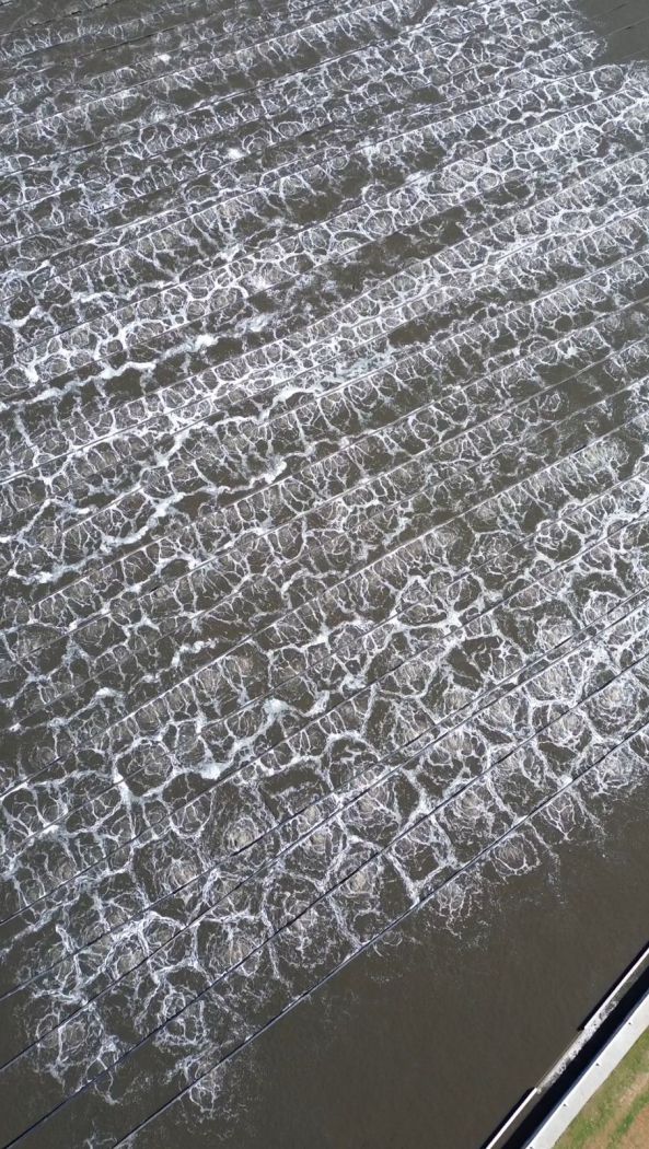 Com as 14 novas linhas instaladas, a lagoa opera com capacidade total de aeração. O sistema conta agora com 29 linhas em funcionamento. A entrada em operação das novas linhas permite a operação na lagoa sem que haja emissão de odor durante o tratamento do efluente.