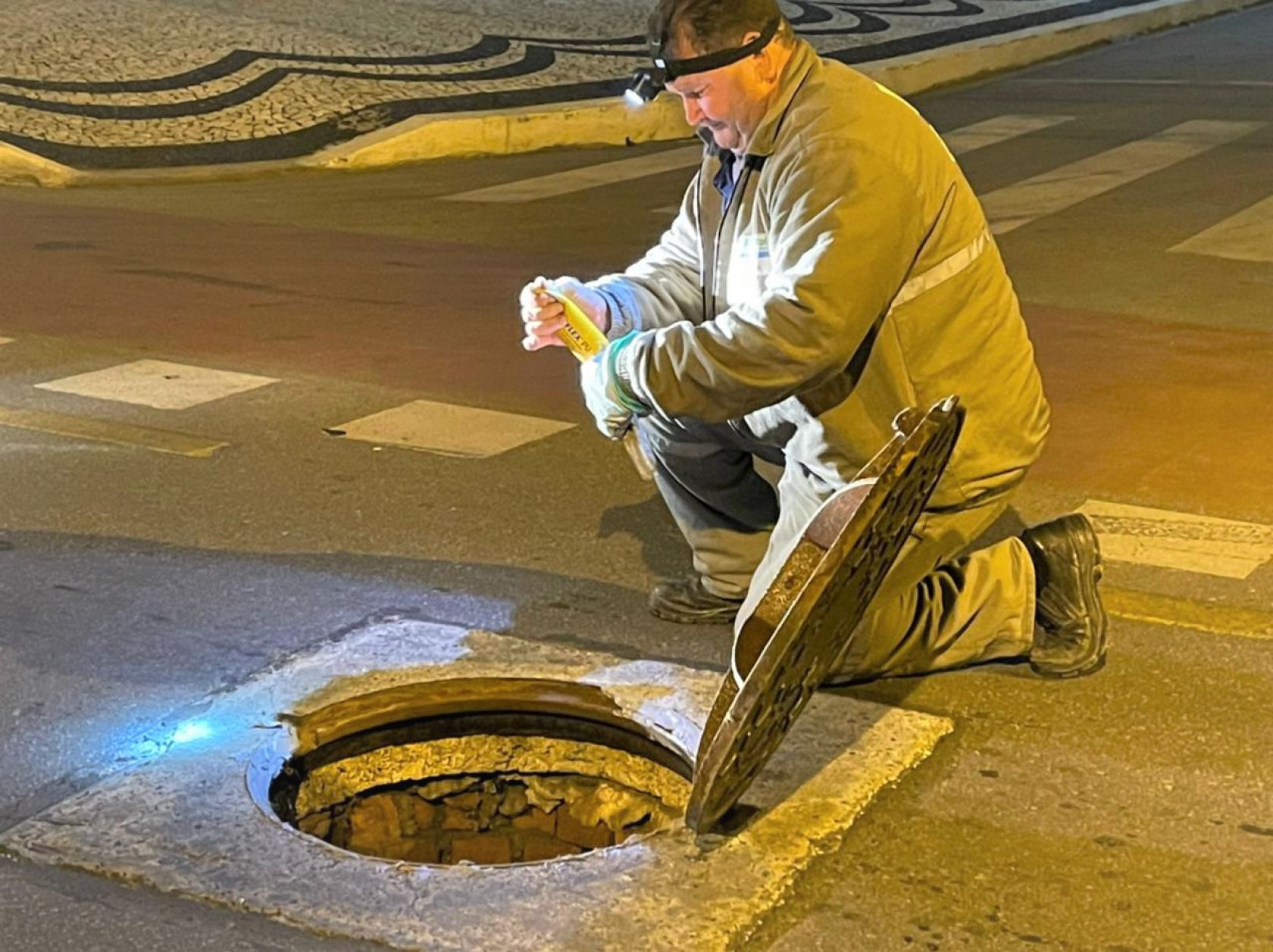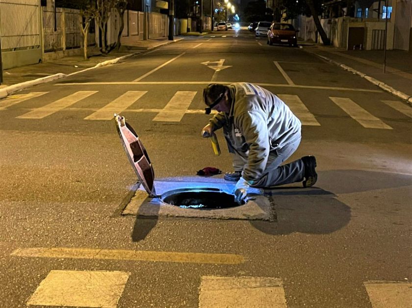 Além da manutenção preventiva, o serviço atende as demandas sobre tampas de Poços de Visita (PV) que começam a fazer barulho com a passagem de veículos. Na manutenção é colocado uma geomanta ao redor do PV para impedir o contato do metal e evitar o barulho. “Além da solda em alguns casos, colocamos uma massa e uma manta para fixar melhor as tampas”, explica o coordenador da Emasa, Paulo Gilberto Pinheiro, que acompanha o trabalho.