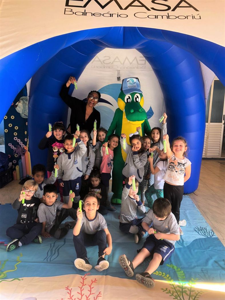 De forma lúdica e com brincadeiras, os alunos aprendem sobre os cuidados com os rios e praias, o uso correto da água para evitar desperdício, como ao tomar banho e escovar os dentes. “Usamos uma linguagem simples, incluindo brincadeiras para que os alunos despertem desde pequenos sobre consciência ambiental e levem o aprendizado para dentro de suas casas, pois as crianças são agentes multiplicadores entre seus pais, irmãos, familiares e amigos”, menciona o engenheiro Ambiental Sanitarista, Hilário Zornitta Júnior, um dos responsáveis pelo programa. Todas as crianças recebem de brinde do mascote um canudinho sustentável.