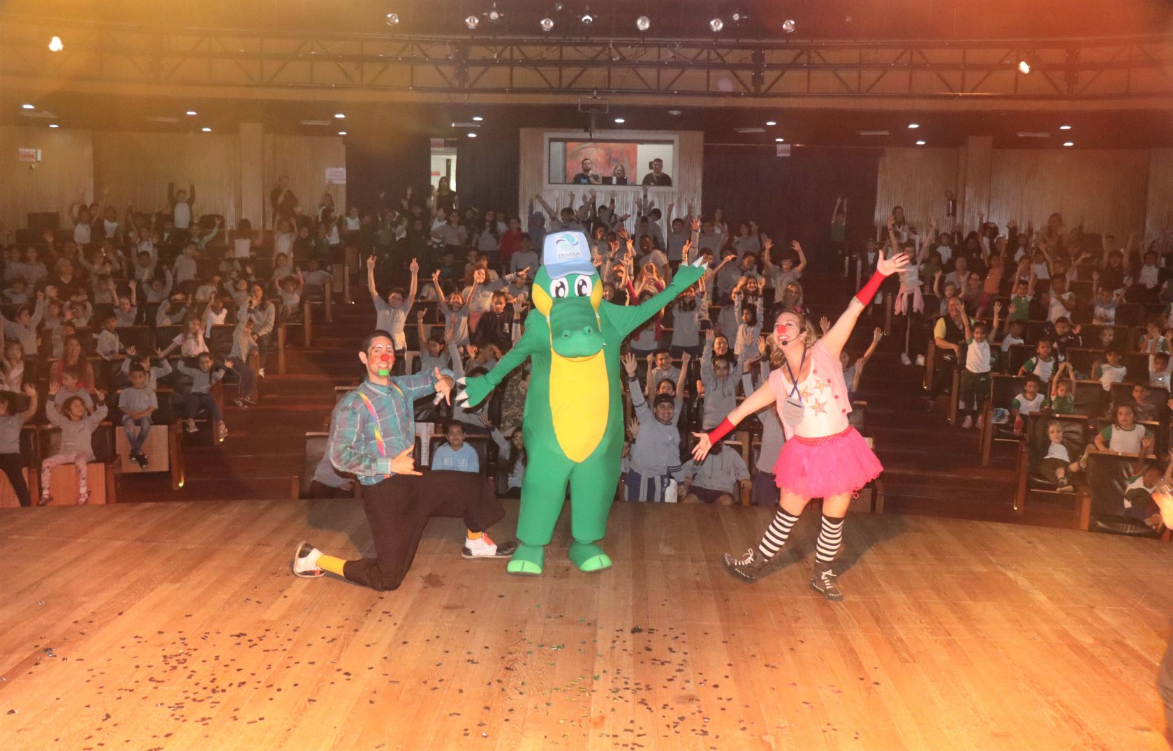 Olhos vidrados, muita empolgação e alegria não faltaram na plateia do Teatro Municipal Bruno Nitz, nesta quinta-feira (13), durante a apresentação do espetáculo teatral infantil “Jacamasa, Tartaruga e Estrelinha em busca da água perdida”, com participação especial do mascote JACAMASA. Cerca de 480 alunos dos Núcleos de Educação Infantil (NEI) e Centros Educacionais Municipais, de Balneário Camboriú e de Escolas de Camboriú, prestigiaram as apresentações no período matutino e vespertino, que foram as últimas deste ano, como parte das atividades do Programa de Educação Ambiental – PEA, da Empresa Municipal de Água e Saneamento (Emasa).
