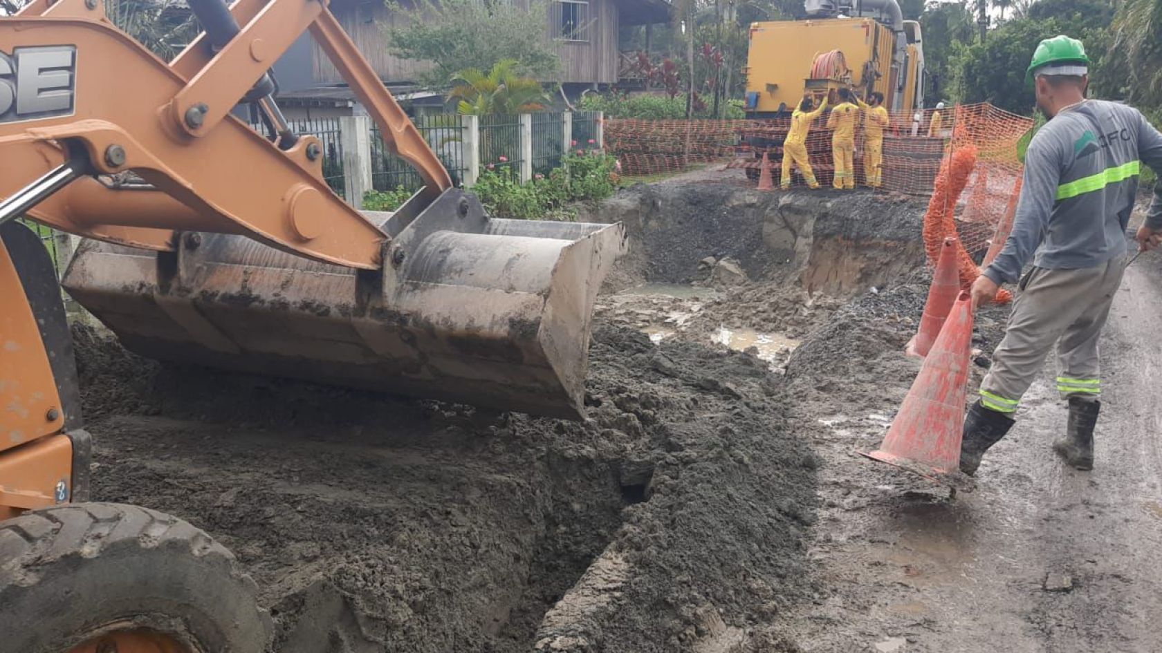 A coleta, em circunstâncias normais, ocorre no período manhã, mas devido a escavação para assentamento da rede de esgoto no local teve de ser postergada.