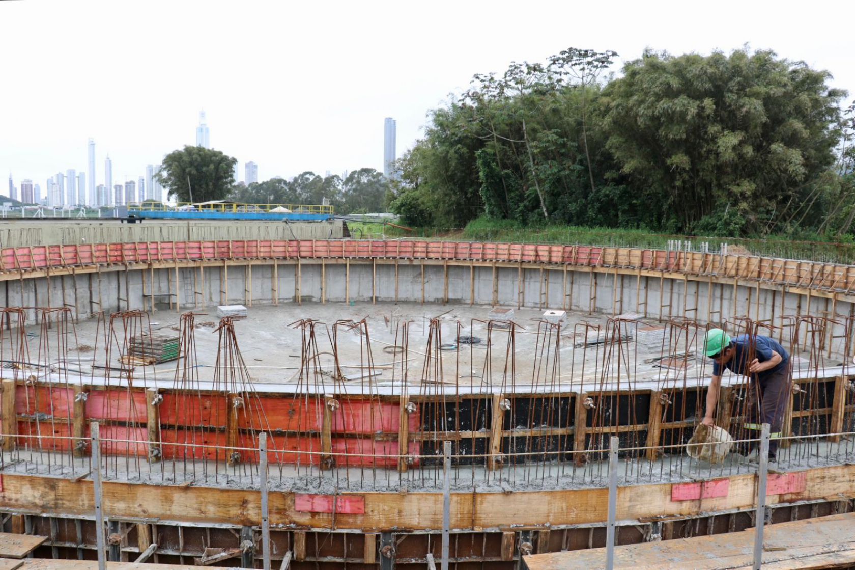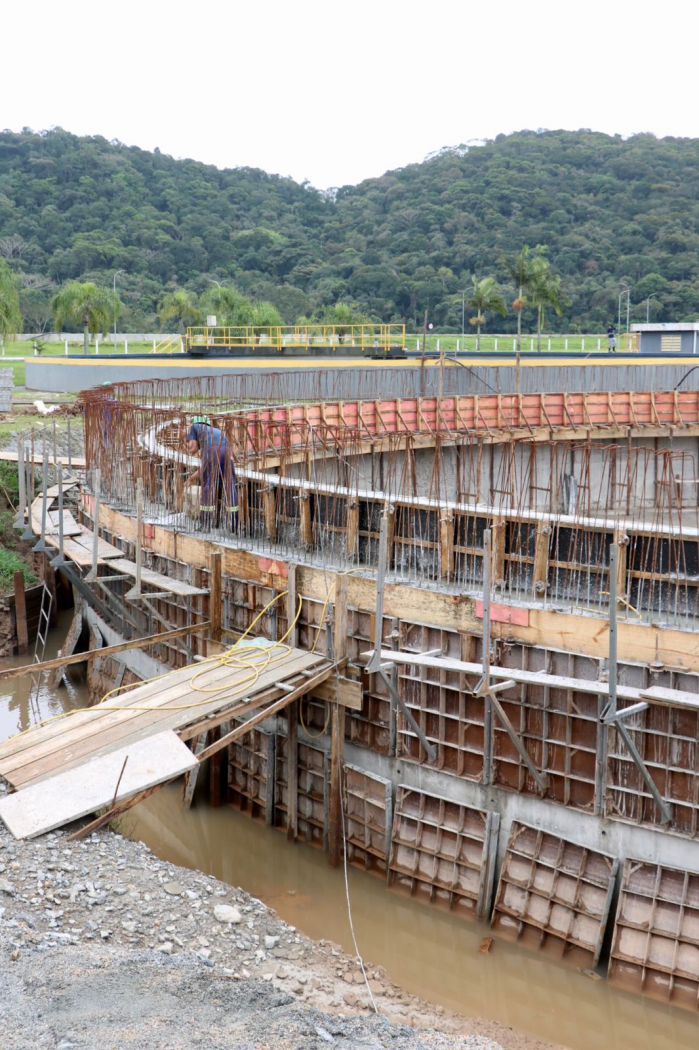 A Empresa Municipal de Água e Saneamento de Balneário Camboriú - Emasa, teve executada nesta quinta-feira (05), mais uma etapa da obra do novo decantador da Estação de Tratamento de Esgoto (ETE) do bairro Nova Esperança: a concretagem da calha do novo equipamento.