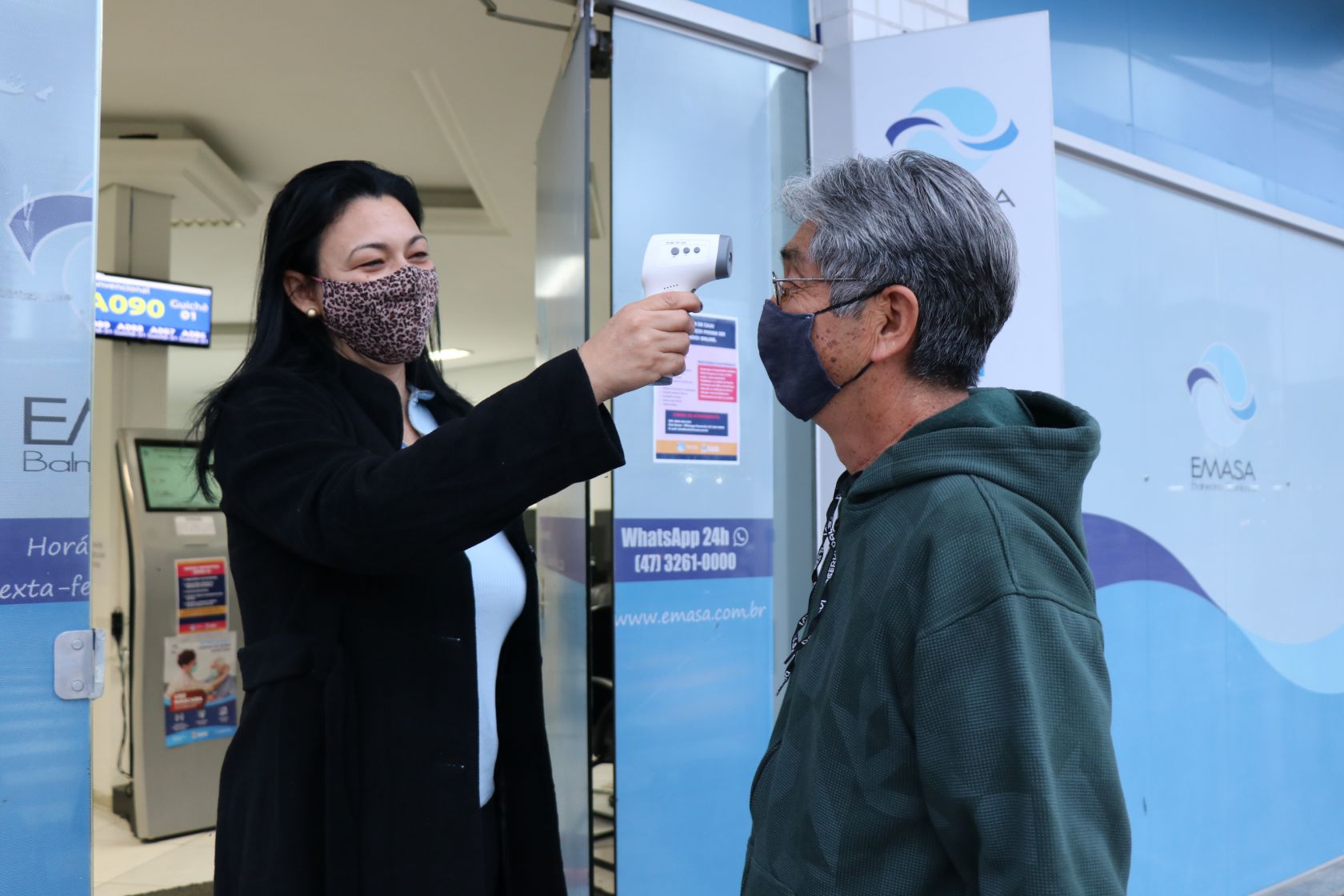 A Empresa Municipal de Água e Saneamento (Emasa) adotou mais uma medida preventiva ao coronavírus (COVID-19) e a partir desta quinta-feira (04), realiza aferição da temperatura corporal por meio de termômetros digitais, de consumidores e colaboradores antes de entrarem na Autarquia.