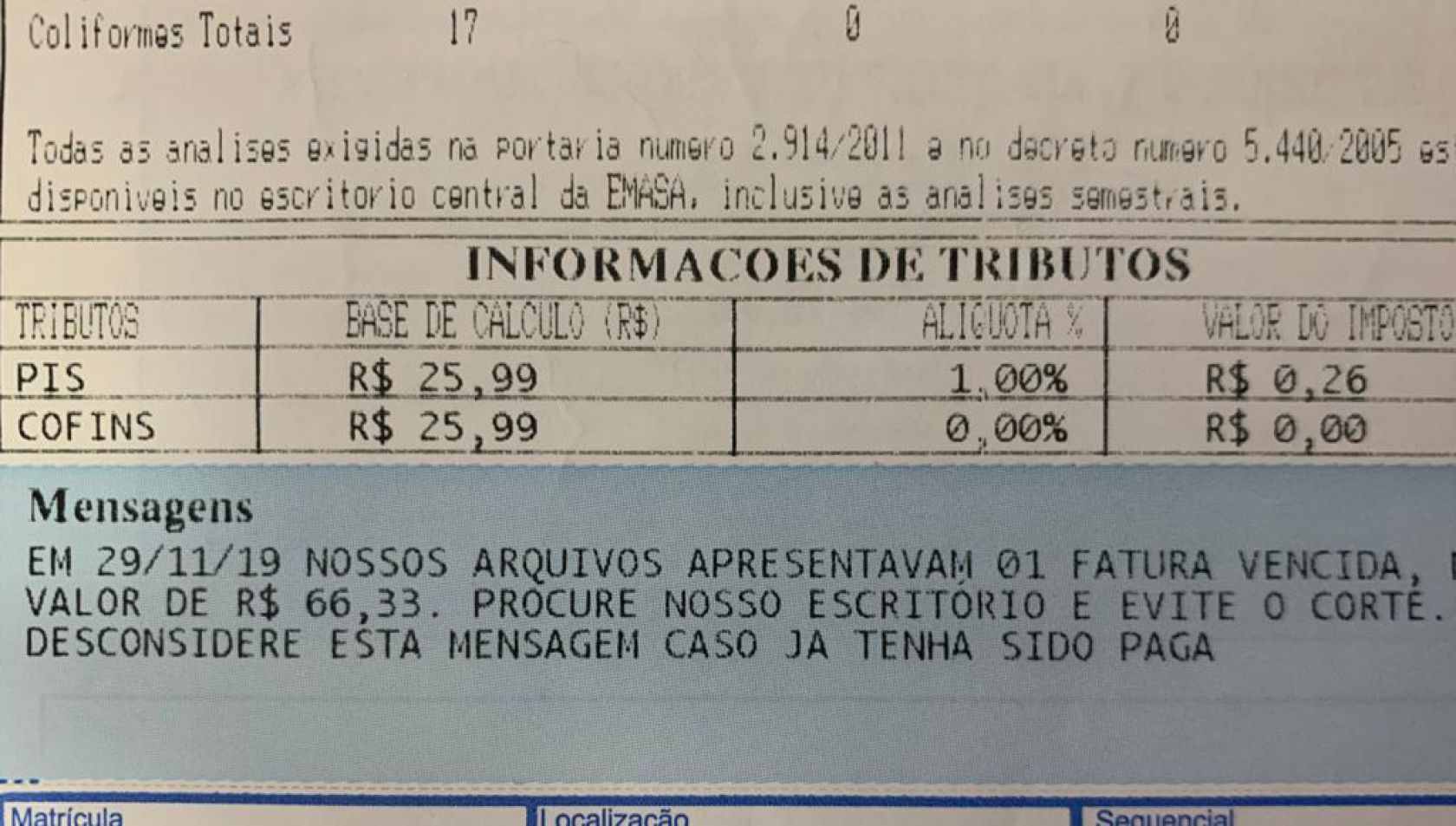 A Emasa esclarece aos consumidores que não realiza cobranças de débitos via telefone, SMS, WhatsApp ou e-mail. Caso seja necessário, o aviso de débito é enviado junto com a fatura mensal, entregue impressa pelo leiturista, ou via e-mail, em caso de o consumidor já ter feito o cadastro.