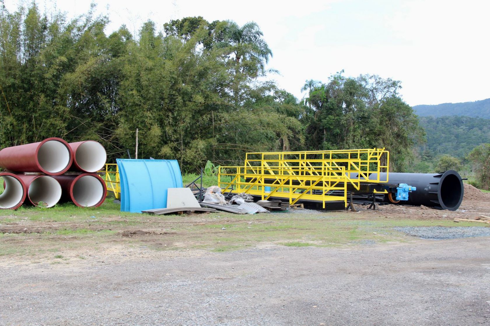 A estrutura eletromecânica do novo decantador, que chegou nesta terça-feira (05), tem por objetivo remover o material sobrenadante e o lodo decantado no fundo do tanque.