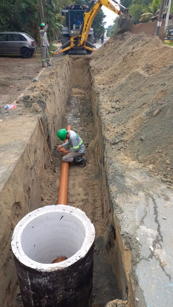 Até o momento, 37 ruas foram contempladas, sendo: 28 ruas com a rede concluída - 11 no Estaleirinho e 17 no Estaleiro. Destas, 09 estão com serviço em andamento, fase de pavimentação ou com alguma pendência, como os casos que precisam da detonação de rocha. As obras iniciaram no fim do mês de outubro de 2021.