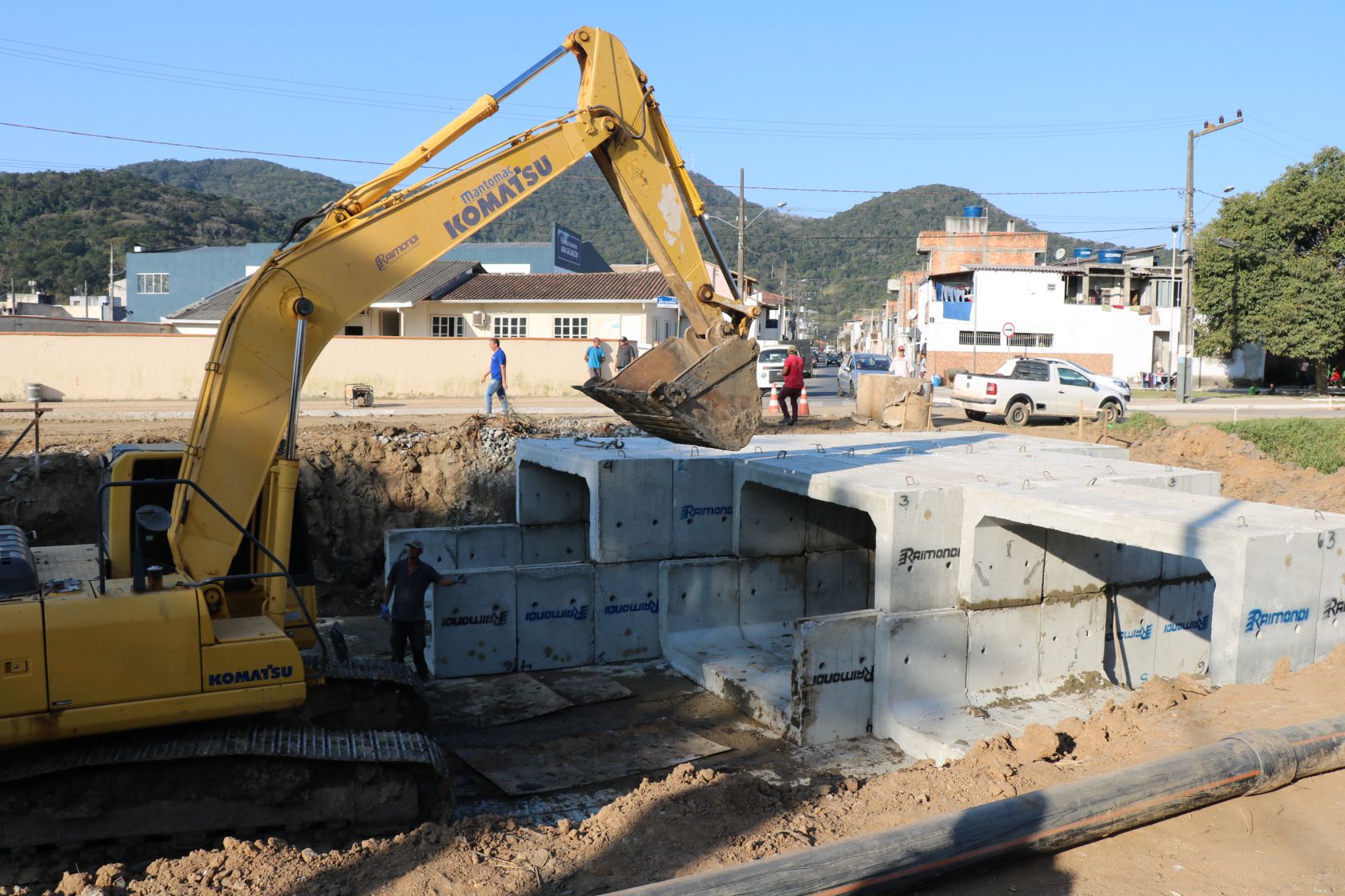 segue a todo vapor e a semana iniciou com a instalação das galerias celulares da nova ponte - entre as ruas Pedro Pinto Felipe e Sargento Mário Manoel Rodrigues, na Barra. Assim como as outras duas pontes já existentes no trajeto do rio, a nova estrutura vai auxiliar na vazão da água do rio e trazer mais segurança aos moradores da região Sul.