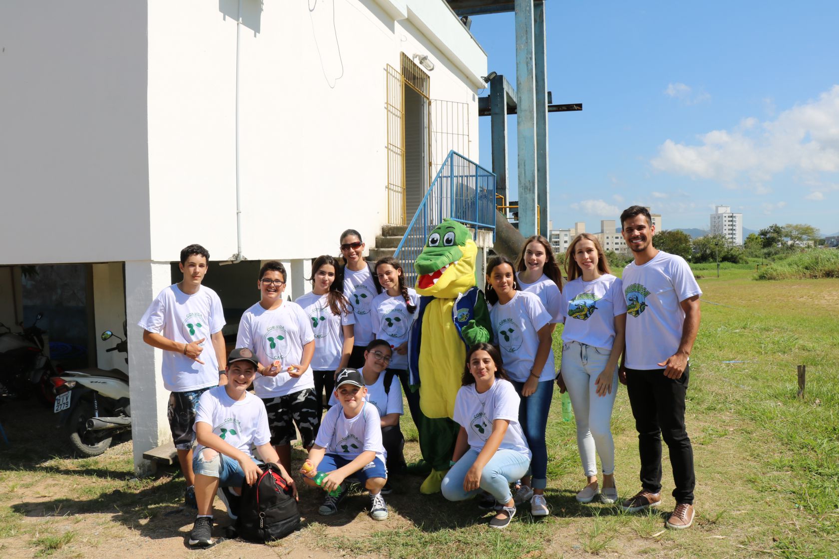 O jacaré mais querido de BC voltou às atividades e nesta quinta-feira (12), o JACAMASA e sua equipe levaram um pouco de conhecimento sobre água e saneamento aos alunos do CAIC Ayrton Senna. Os estudantes do 5º ao 9º ano, que fazem parte da Comissão de Meio Ambiente e Qualidade de Vida (COM-VIDA) e já possuem uma parceria com o Programa de Educação Ambiental (PEA) da EMASA, visitaram a Estação de Recalque de Água Bruta (ERAB), onde é feita a captação de água bruta.