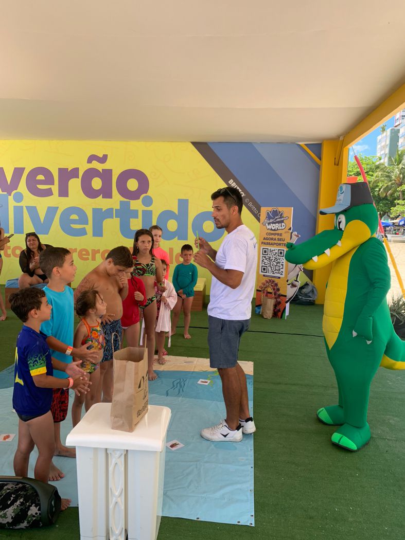 Animação e muitas brincadeiras não faltaram na manhã ensolarada do último sábado (14), com as atividades do projeto Praia Limpa nas areias da Praia Central. E quem marcou presença por lá, foi o Jacamasa, mascote da Empresa Municipal de Água e Saneamento (Emasa), nas tendas do Parque Beto Carreiro e do Parque Unipraias junto com o Barco Pirata. O jacaré mais querido de BC e a equipe do Programa de Educação Ambiental – PEA JACAMASA, vão participar em mais três dias (confira no fim do texto).