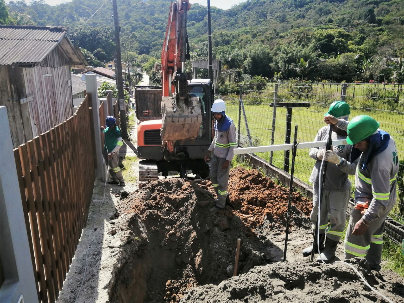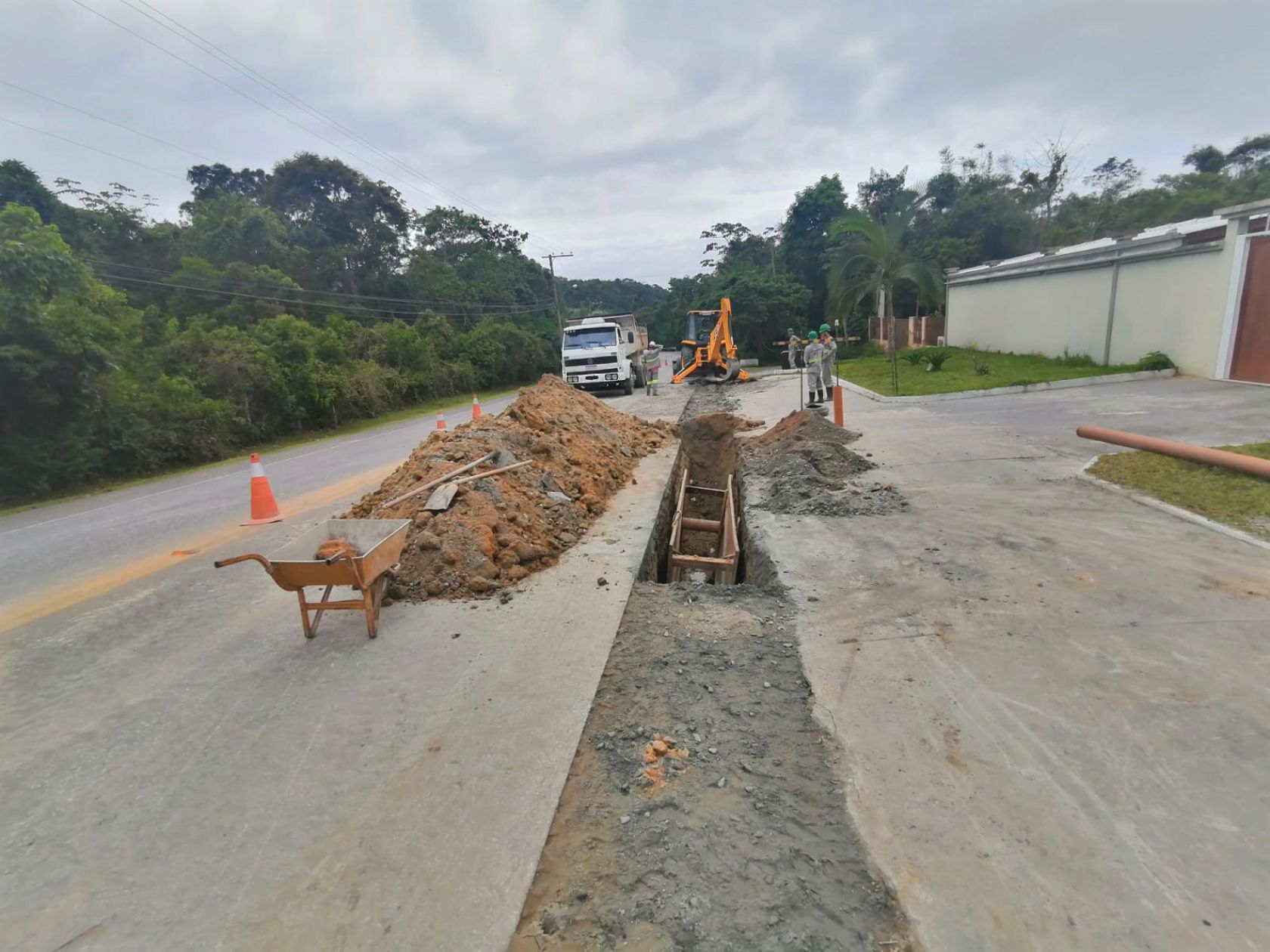 Os trabalhos para implantação da rede coletora de esgoto seguem nos bairros Estaleiro e Estaleirinho, com mais de 5.200 metros de rede executados em 32 ruas, sendo 21 no Estaleirinho e 11 no Estaleiro. Destas, 12 ainda serão repavimentadas.
