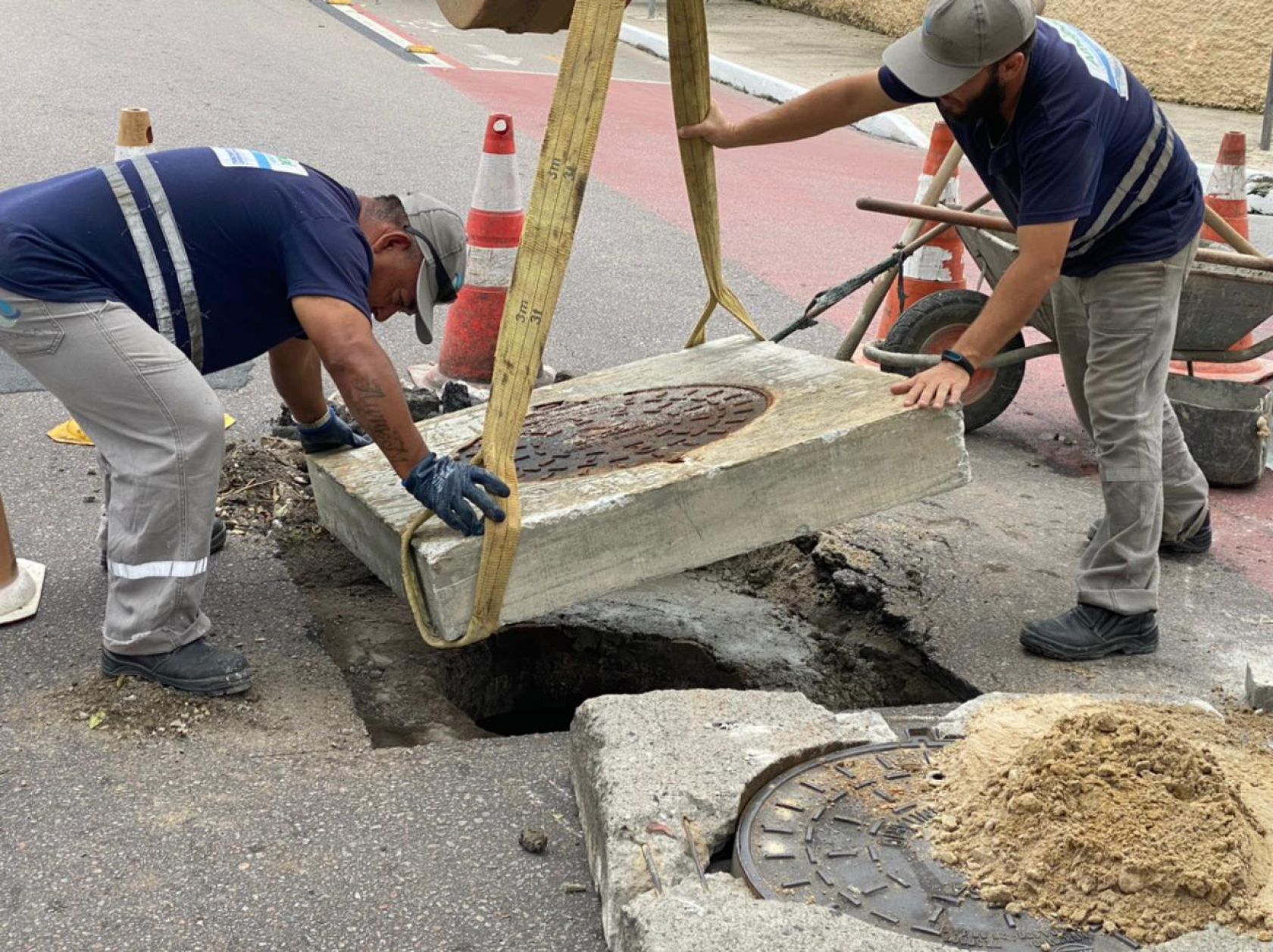 A Emasa continua a obra de instalações das lajes e tampas dos poços de visitas (PV) do Bairro Vila Real. A partir das 8h desta segunda-feira (15), ocorre uma intervenção na Rua Dom Daniel com a R. Dom Ricardo.