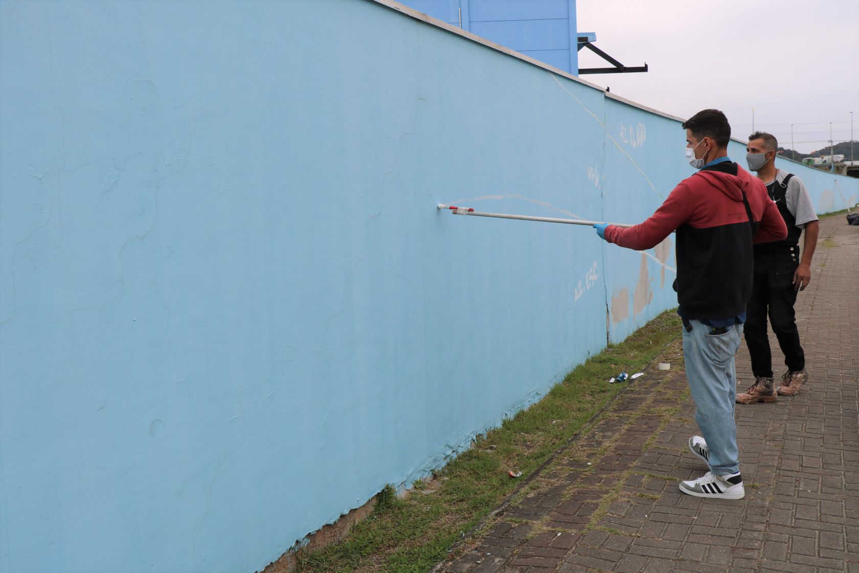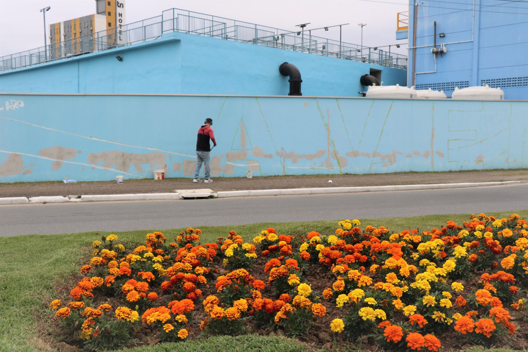 Durante esta semana, o muro de 570 metros de comprimento teve a preparação com lavagem e reparos necessários para o início da pintura, que vai colorir um dos principais acessos da cidade com imagens de Balneário Camboriú, sobre o meio ambiente, o tratamento e a preservação da água e a própria Avenida das Flores. A pintura também contemplará a caixa d’água principal da Estação. SE o tempo colaborar, a previsão é que o trabalho fique pronto até o fim do mês de agosto.