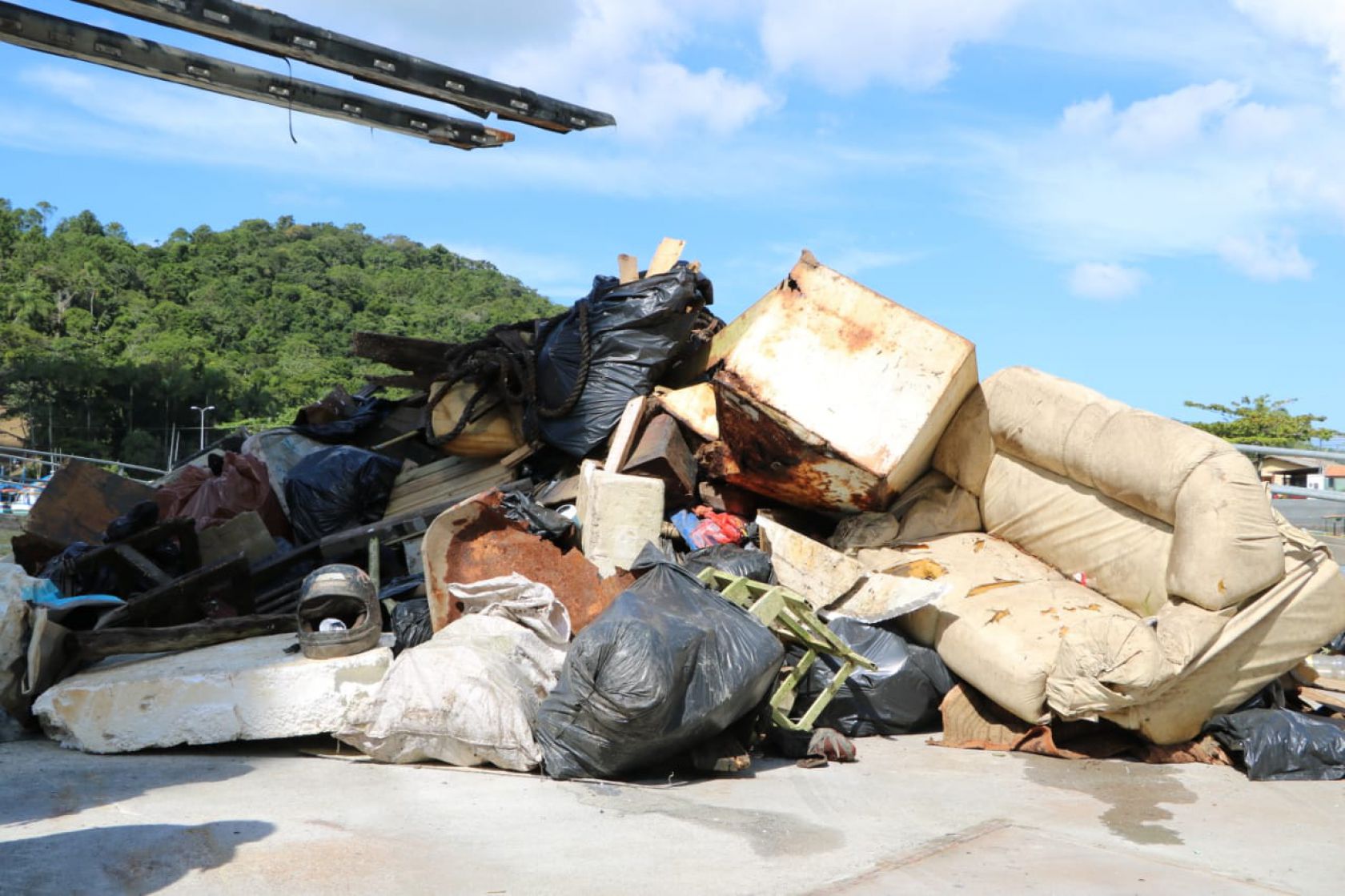 Um sofá, móveis, televisão quebrada, pedaços de geladeira, pneus, garrafas, plásticos e cordas foram alguns dos materiais retirados do Rio Camboriú durante o mutirão de limpeza no último sábado (24). O material recolhido pelas equipes da 2ª Ação Interligada de Limpeza do Rio Camboriú chegou a 50 metros cúbicos, pelos cálculos dos coordenadores da ação. Todo esse material, posteriormente, foi levado por caminhões caçambas da Prefeitura de Balneário Camboriú para o descarte correto.