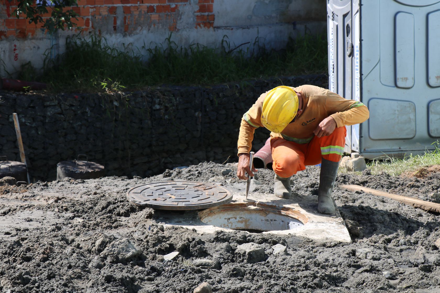 Das 53 ruas contempladas, 10 aguardam a liberação técnica para poderem se conectar. Toda a parte estrutural da obra foi concluída e entregue pela empresa executora, faltando a liberação dessas 10 ruas e a operação das bombas e elevatórias.