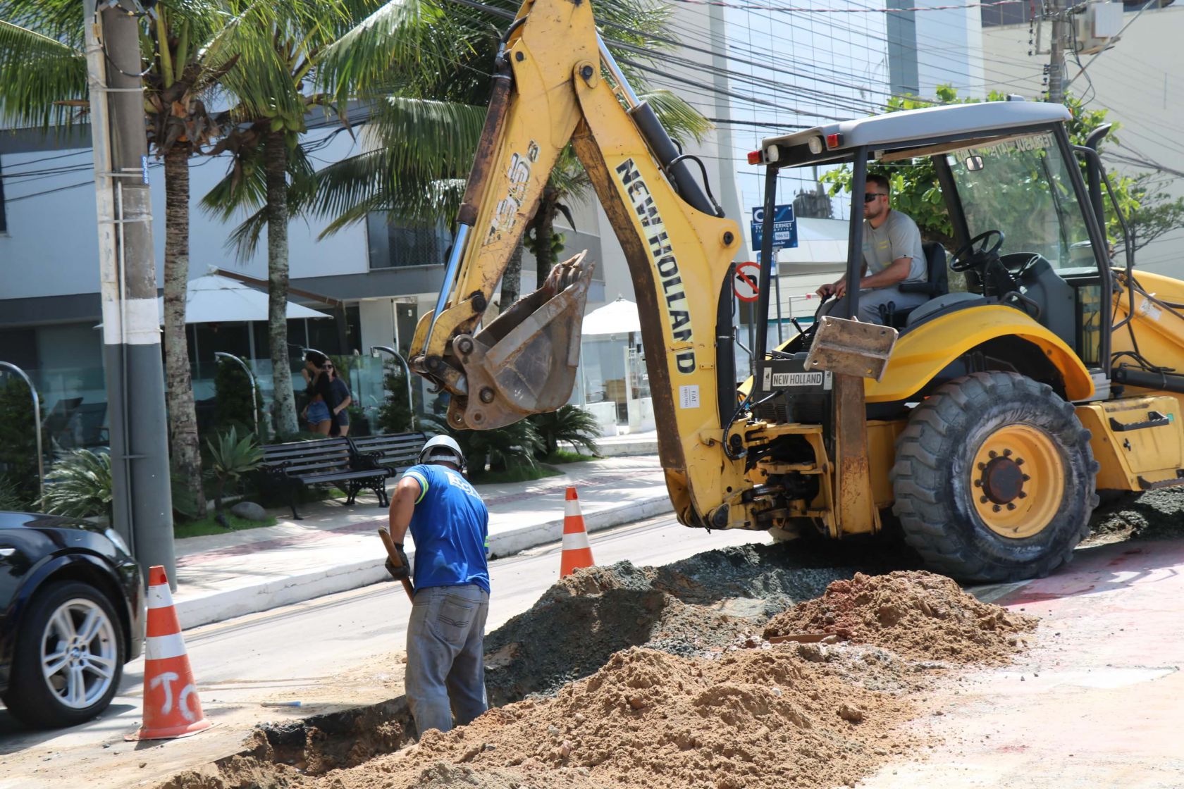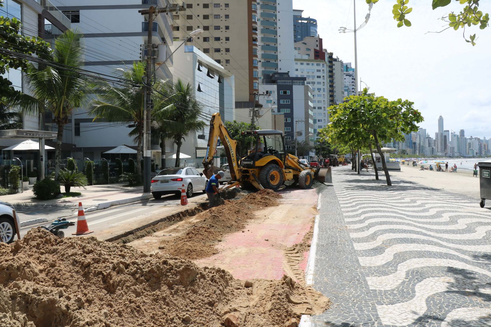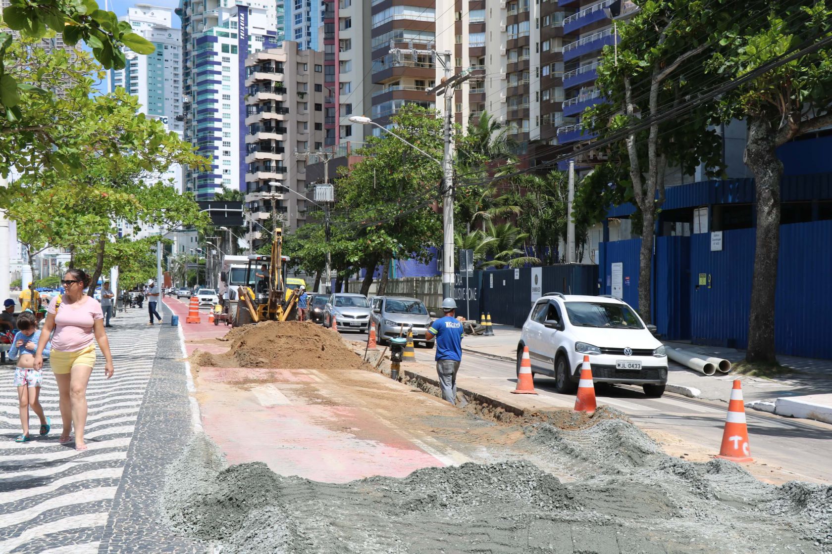 A obra de instalação do Emissário da Barra Sul foi concluída nesta semana e a nova rede coletora de esgoto segue em fase de teste, para ser colocada em operação definitiva nos próximos dias. O trecho que recebeu a rede foi pavimentado provisoriamente com lajotas até a completa compactação do solo, para posterior pavimentação asfáltica.