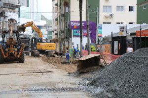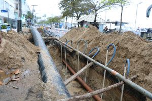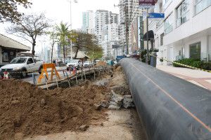 Na Avenida Atlântica, a obra acontece da Rua 2300 até 2000, com rebaixamento de lençol freático e escoramento de vala, para posterior assentamento da tubulação. Com isso, o trânsito no local sofre interferências neste trecho, ficando em meia pista ou sendo desviado pela ciclovia em alguns momentos. O acesso a essas vias também está interditado e o local sinalizado para orientar os motoristas.