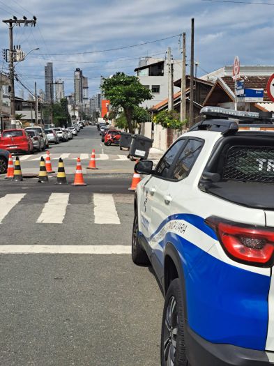 A obra é para desobstrução da rede coletora de esgoto na rua. O local está sinalizado para orientar os motoristas e agentes de trânsito estão fazendo o monitoramento.