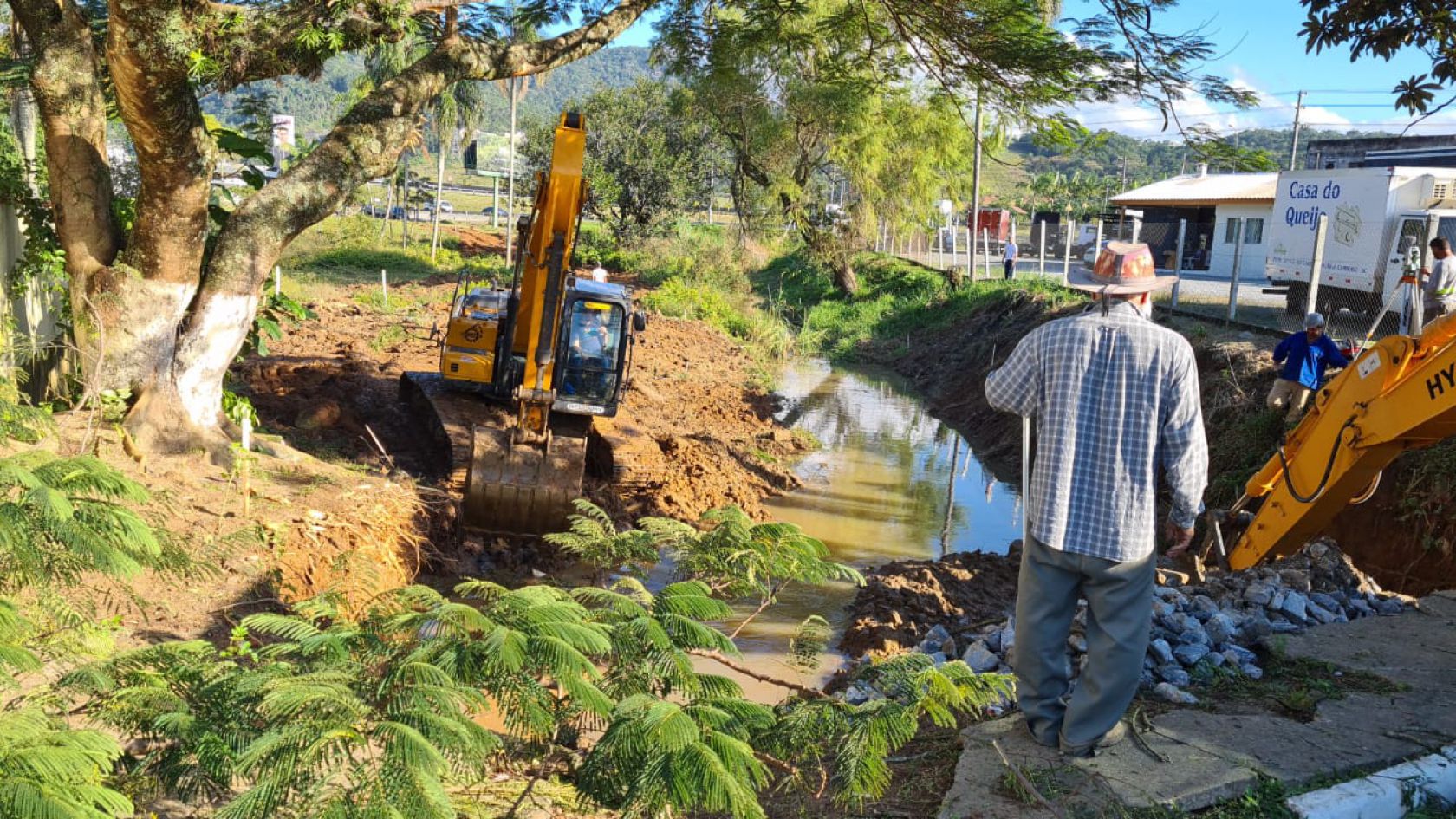 A obra de limpeza, readequação da calha e dragagem do Rio das Ostras, uma reivindicação de décadas dos moradores dos bairros da Barra, São Judas e Nova Esperança está avançando entre os 07 trechos da obra, que compreendem 2.820,00 metros. Nesta semana, uma nova frente foi iniciada no Trecho 03 (próx. BR 101 e Rua Hermógenes Assis Feijó) com a limpeza e regularização do terreno e início da instalação de gabião caixa – estrutura de contenção feita na margem e fundo do rio.