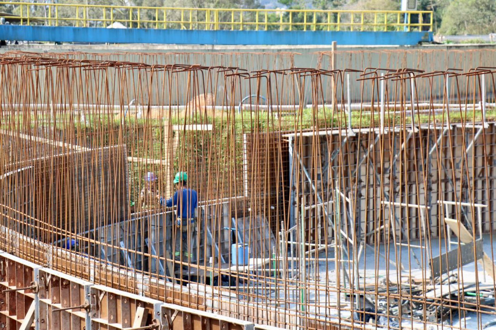 Está tudo pronto para a concretagem da primeira etapa das paredes laterais do novo decantador secundário que está sendo construído na Estação de Tratamento de Esgoto (ETE), do Bairro Nova Esperança.