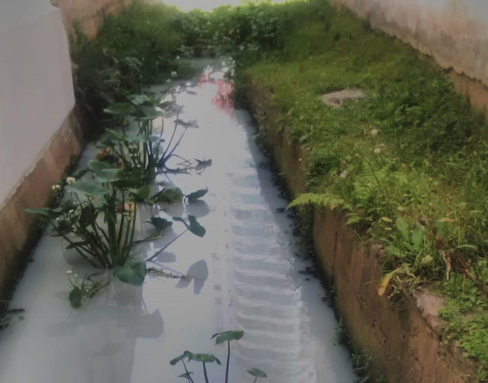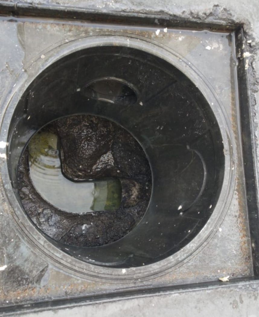 Ao vistoriar um prédio na Rua 1131, a equipe observou que estavam mexendo com tinta e o ralo tinha sido recém lavado. “Foi verificado ainda, que haviam resquícios de tinta na Caixa de Passagem dos ralos do pluvial, indicando que a mancha pode ser proveniente dessa tinta, talvez por terem lavado objetos sujos e escoado neste ralo”, mencionou a fiscal Sanitarista, Andressa Algayer.