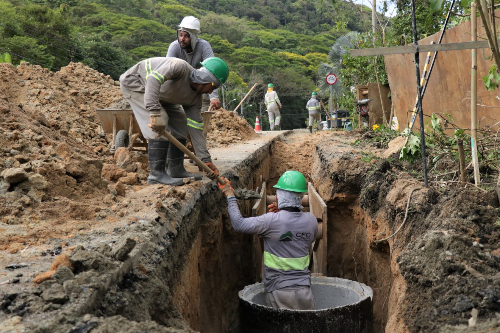 A obra faz parte do projeto de ampliação do Sistema de Esgotamento Sanitário (SES) do Município, sendo contratada pela Empresa Municipal de Água e Saneamento (EMASA) e executada pela CFO - Construtora Fonseca e Oliveira LTDA. Compreende a implantação de 32.706 metros de rede coletora e adutora de esgoto; estações elevatórias; poços de visita; emissários e ligações de esgoto nos bairros Estaleiro e Estaleirinho, que levarão os dejetos até a Estação de Tratamento de Esgoto (ETE), reduzindo a poluição nos rios e praias. O valor licitado foi de R$ 9.983.766,44 e o prazo previsto para a execução é de 18 meses.