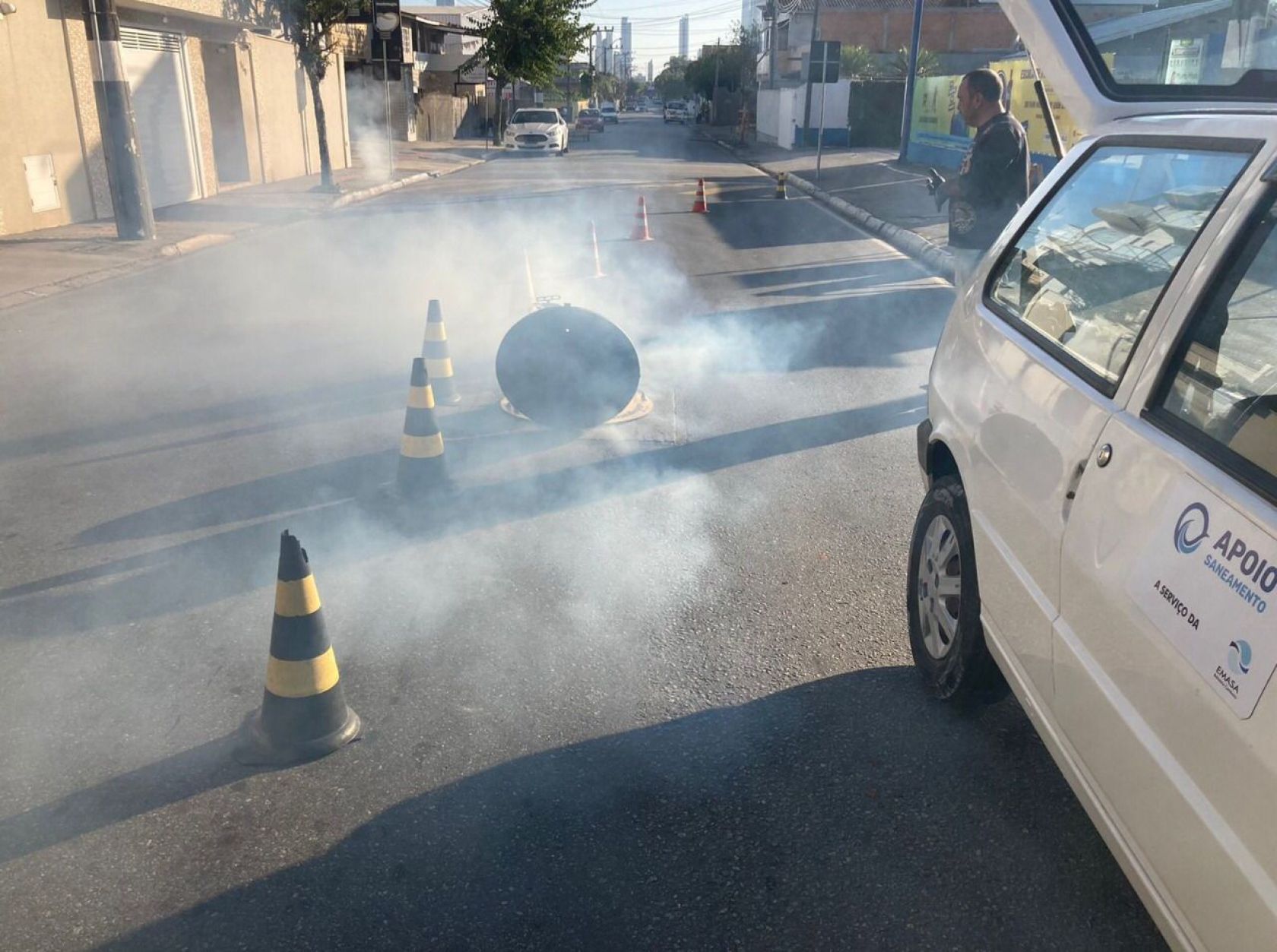 Neste sábado (30), das 8h às 17h, a equipe Programa Se Liga na Rede, da Empresa Municipal de Água e Saneamento (Emasa), executa teste de fumaça em ruas do Bairro Centro. A técnica faz parte das ações para verificar a situação das ligações hidrossanitárias e garantir a qualidade do saneamento e das águas de rios e mares de Balneário Camboriú.