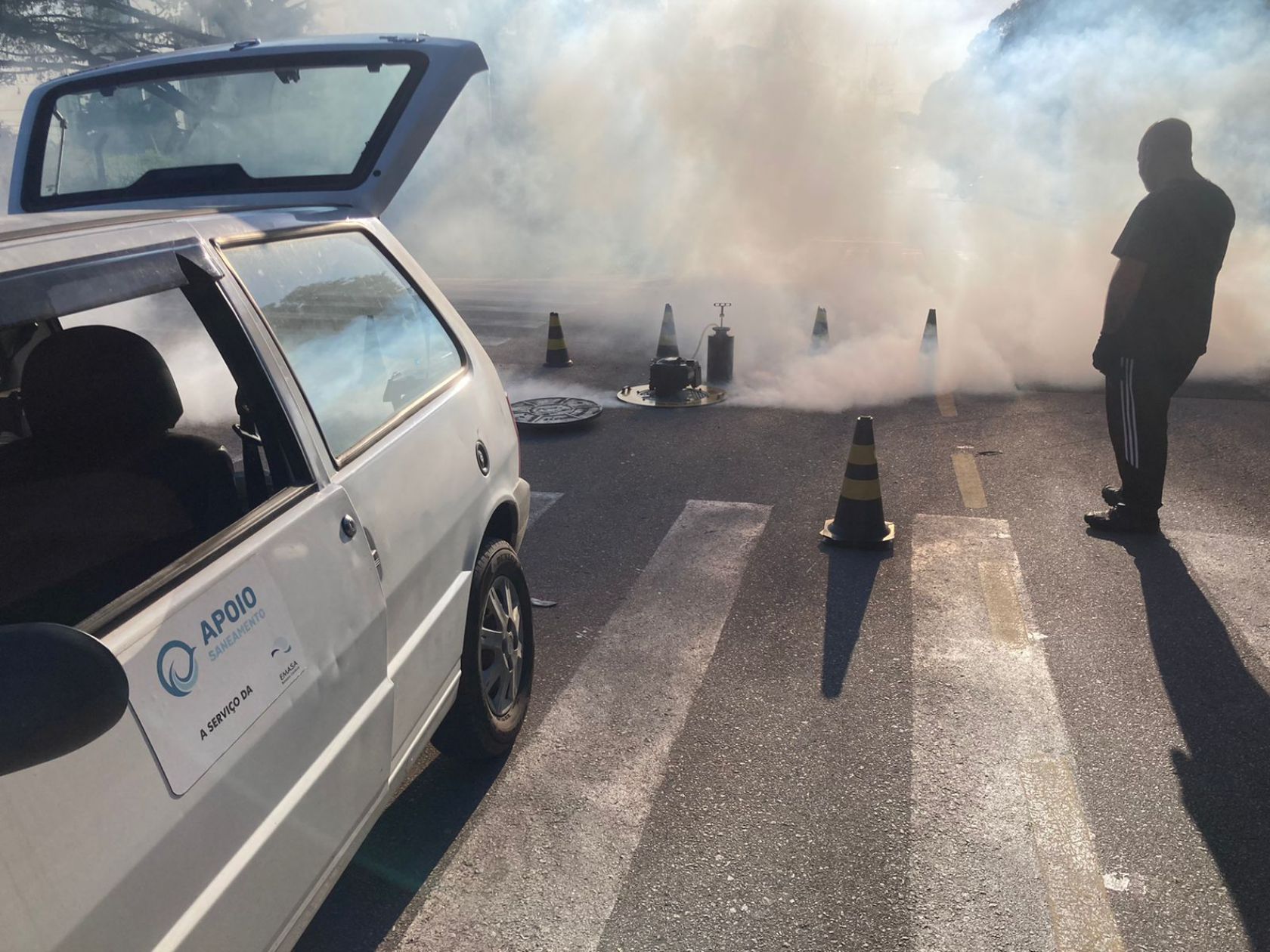 O teste de fumaça é uma técnica utilizada para detectar irregularidades e vazamentos na rede de esgoto. A intervenção é feita por meio do Poço de Visita (PV) e uma fumaça especial, não tóxica, e que não representa risco à saúde, é injetada na rede para constatar as inadequações. A fumaça pode sair pela calha ou alguma saída de esgoto dentro dos imóveis, quando o pluvial do imóvel está conectado à rede de esgoto externa; ou nas bocas de lobo, quando é algum problema na própria rede.