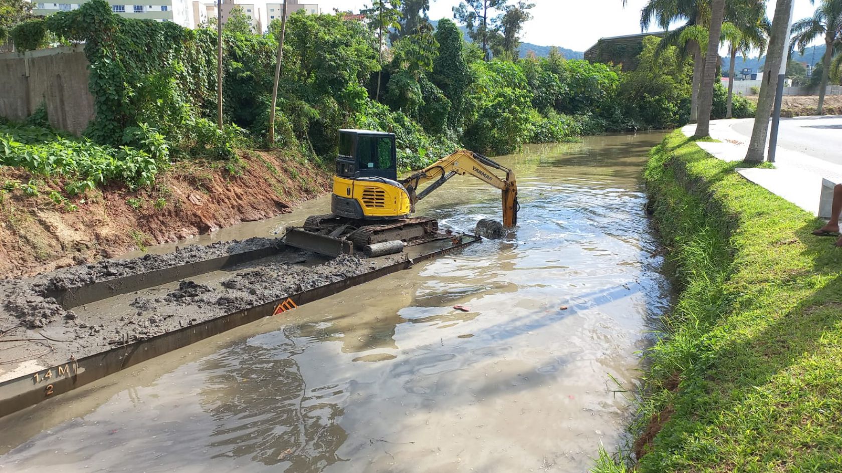 No total serão 1150 metros de extensão a serem desassoreados no Rio Peroba, em que 500 metros deste total já foram realizados.